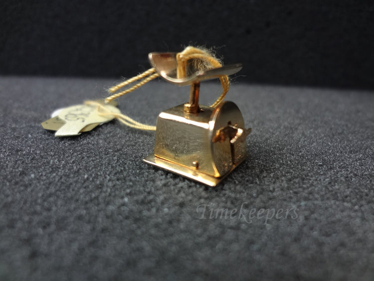 14k Yellow Gold Weight Scale that does go up and down for a necklace or charm bracelet. Looks like it could be an older style baby scale.