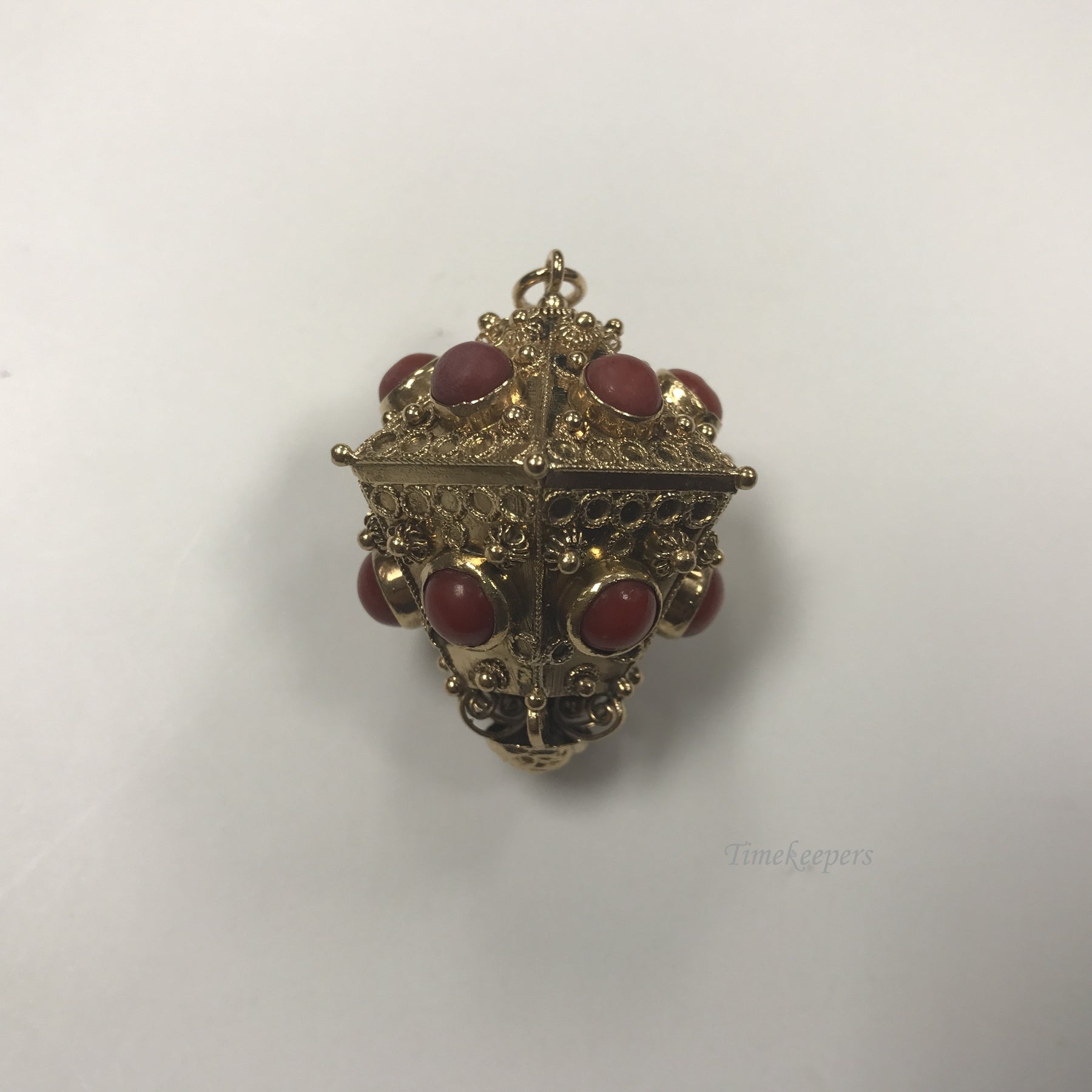 For Sale: (1) d089 Vintage Authentic Stunning 14k Yellow Gold Pendant Coral Unique Design
