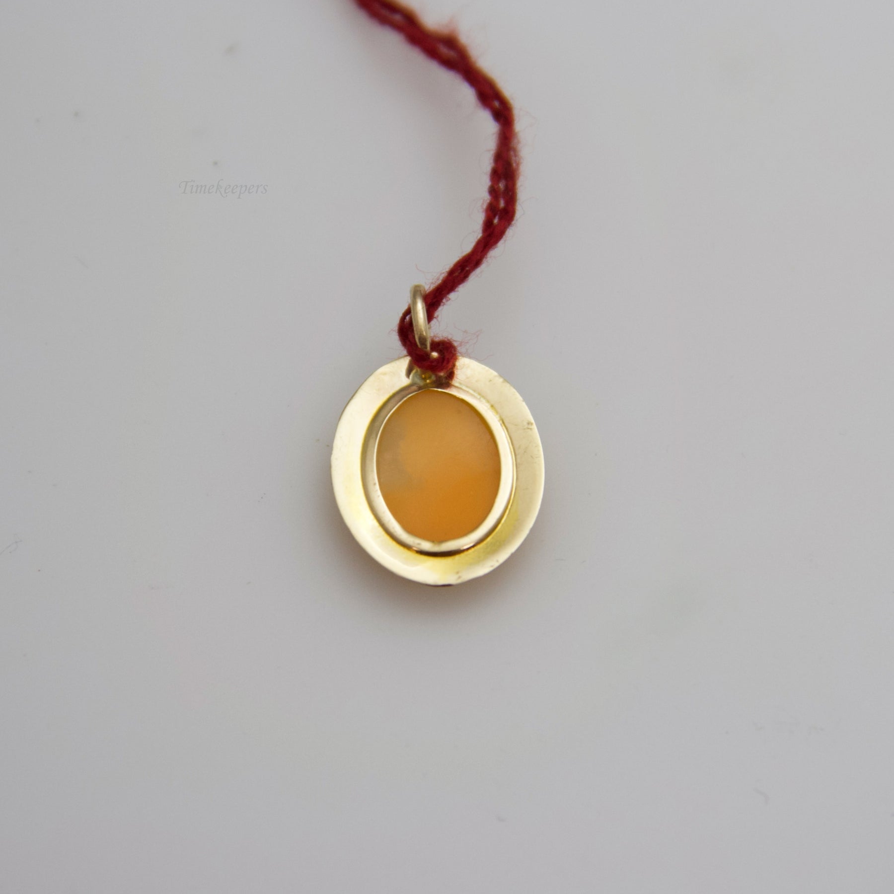 This pendant is decorated by a lovely cameo portrait. This pendant is not stamped, but has been tested for authenticity. Chain is available separately if desired.