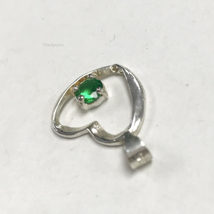 Sterling silver charm pendant. Heart shaped with round green stone 4mm in diameter