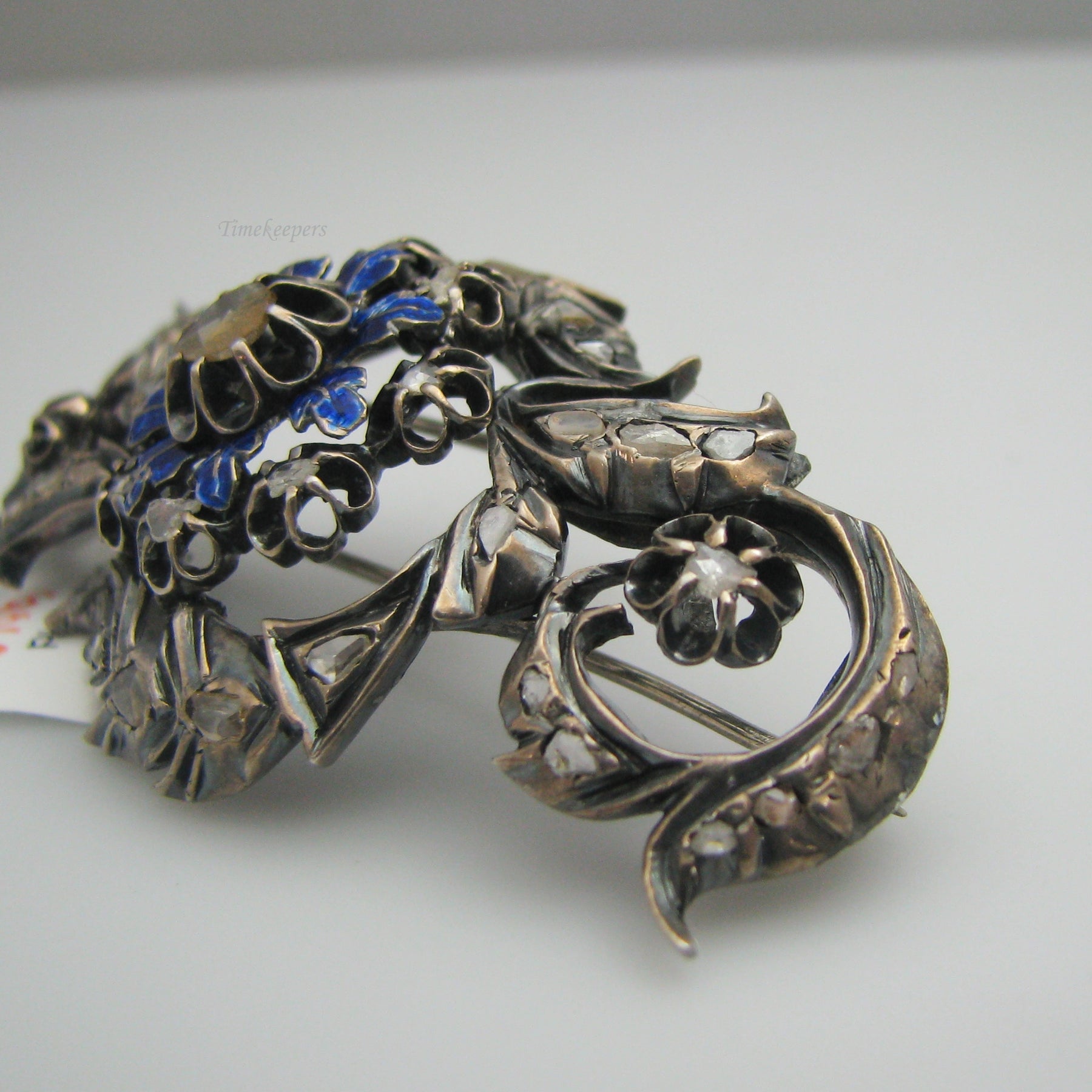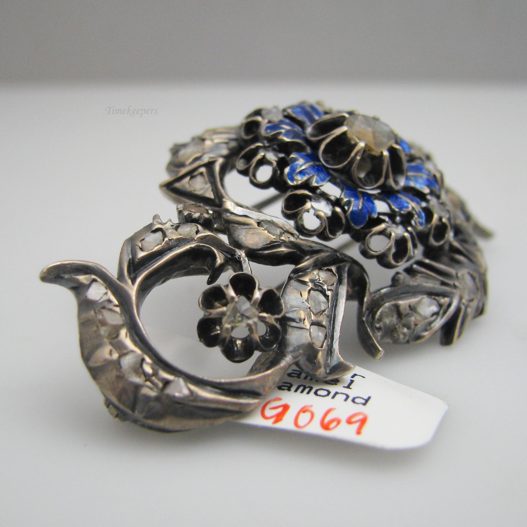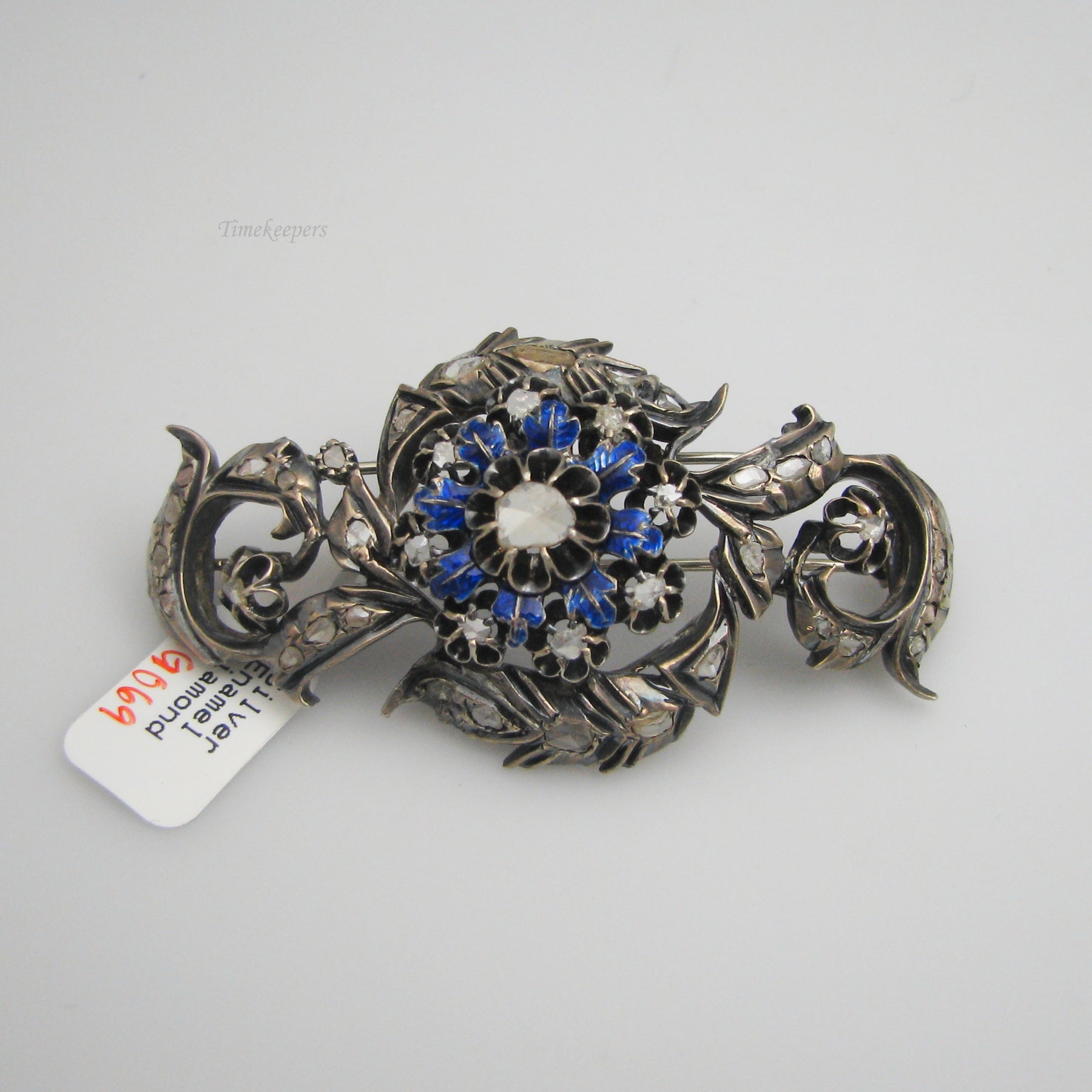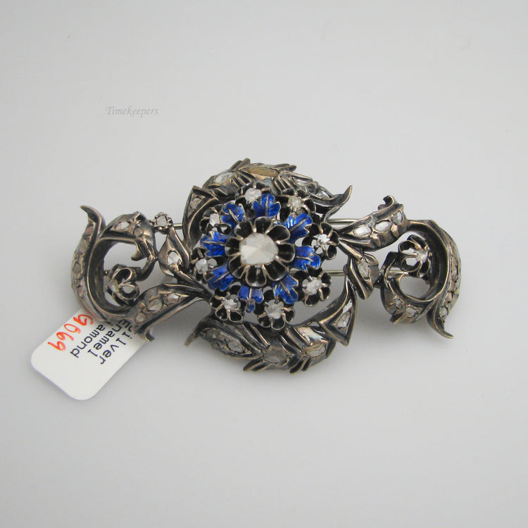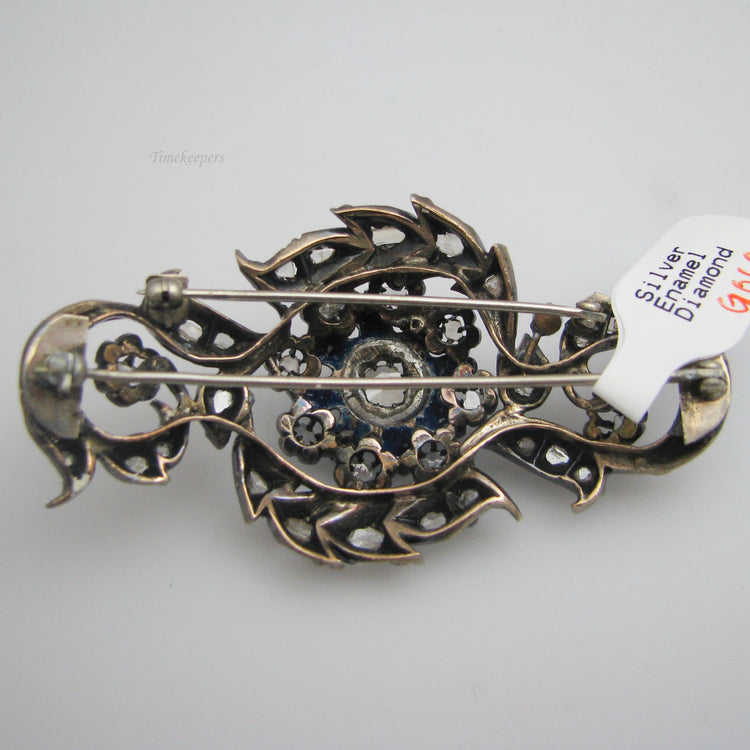 For sale: (1) g069 Antique Georgian Sterling Silver Enamel Diamond Brooch
