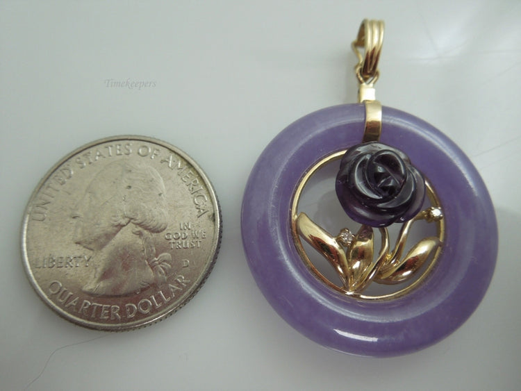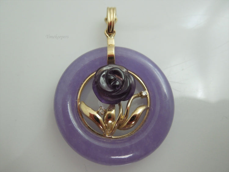 For Sale: (1) g906 Gorgeous Lavender Jade, Amethyst and Diamond Pendant in 14kt Yellow Gold