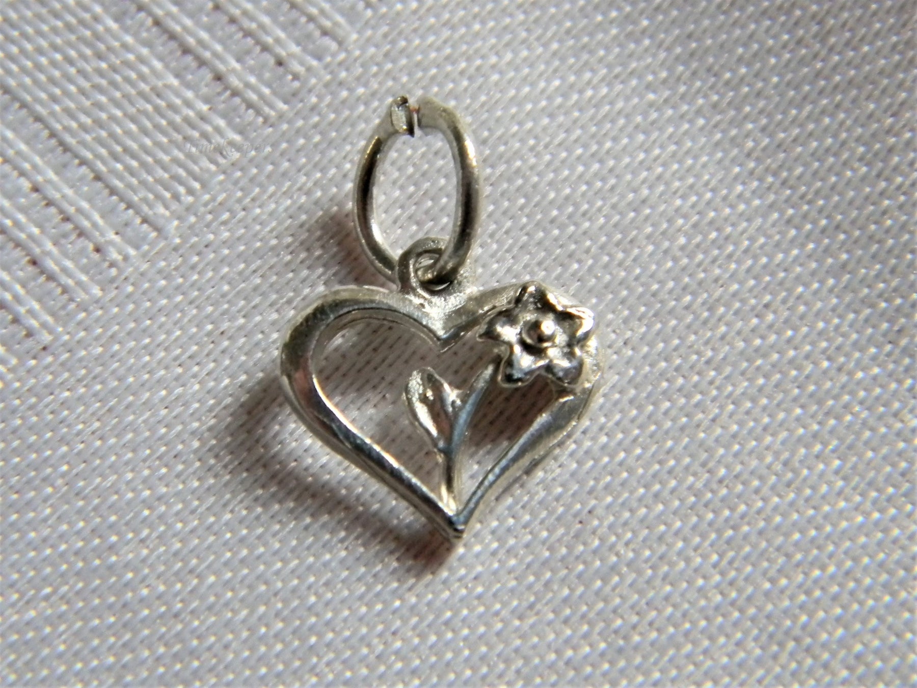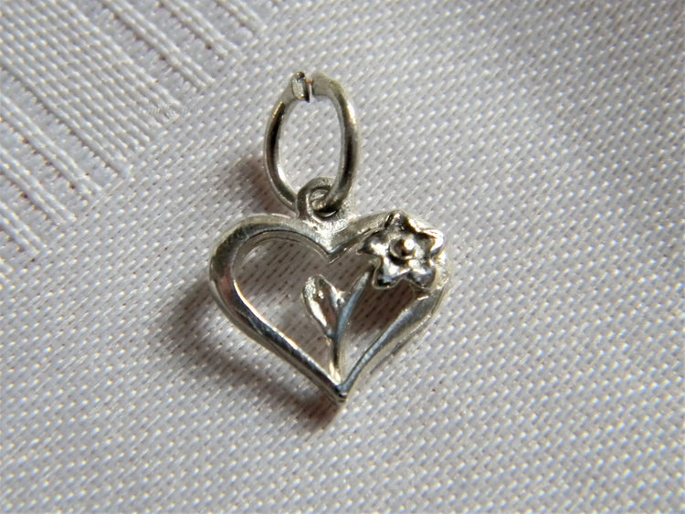 h582 Great Cute Sterling Heart with flower Charm or Pendant