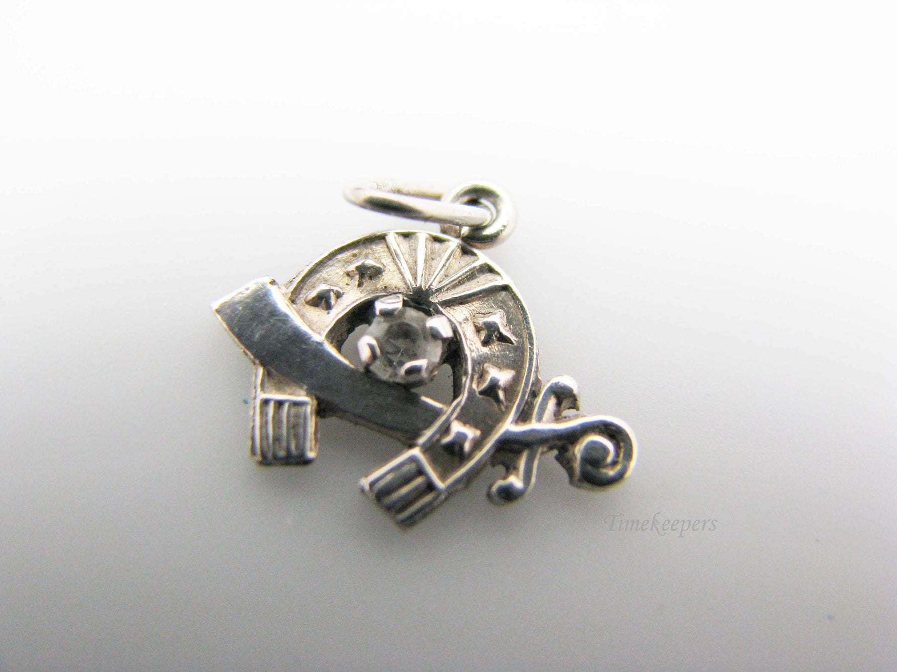 j162 Vintage Sterling Silver Shriners Charm with Clear Stone