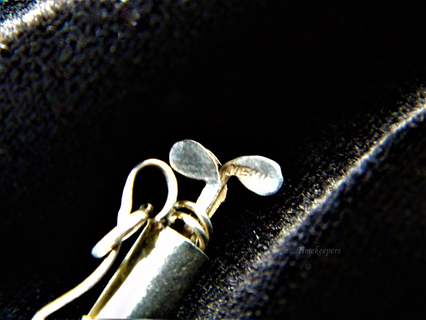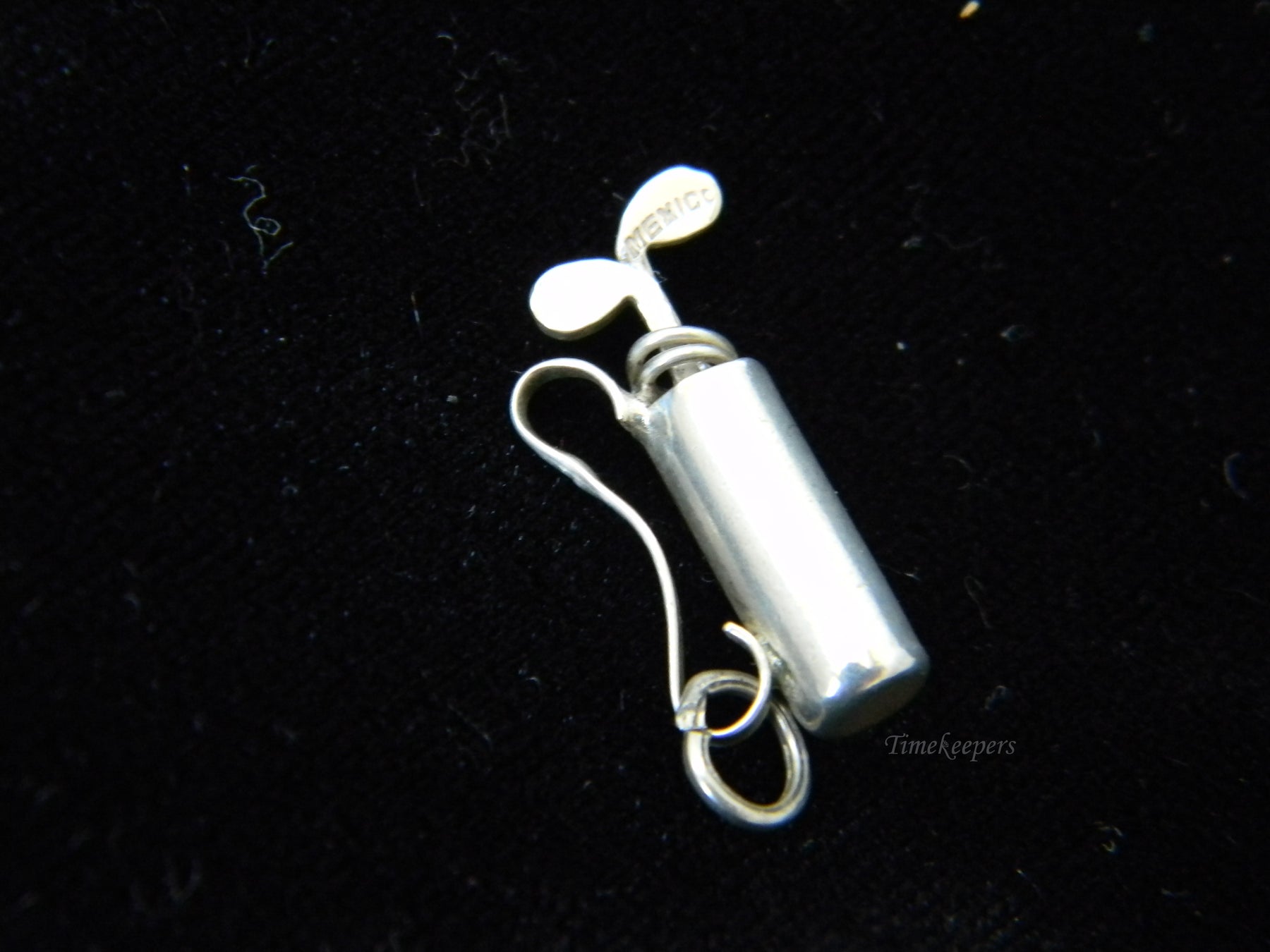 For Sale: Cute Preowned Golf bag and Clubs Charm/ Pendant Sterling Silver PLEASE READ ENTIRE DESCRIPTION BEFORE PURCHASING Pre-owned vintage item. Great condition. Please see pictures for details. Sold as is, as seen on pictures. Not marked but has been tested. One gold club is marked Mexico. Specifics: