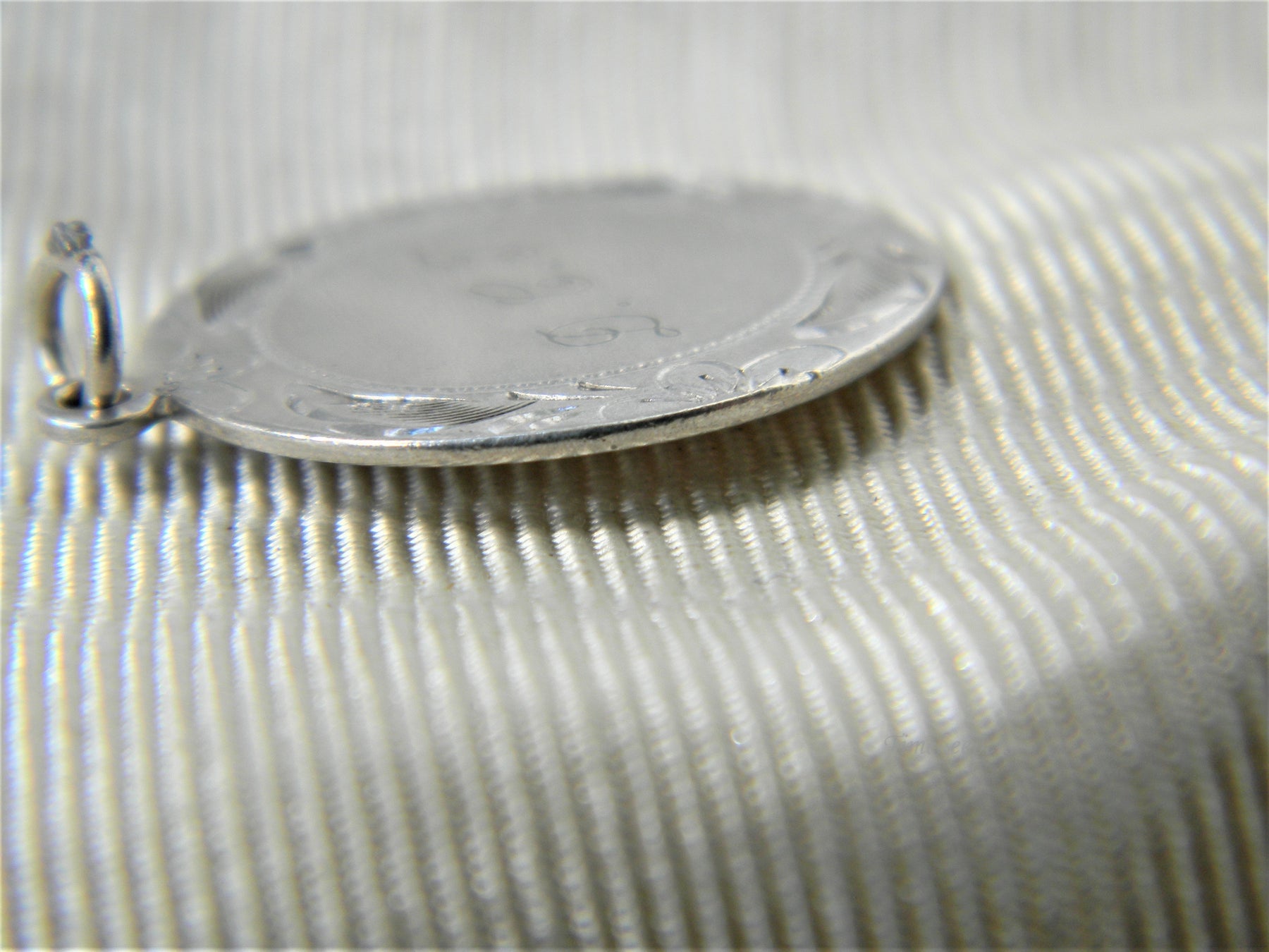j413 Pretty Vintage Sterling Silver Engraved Round Charm/ Pendant