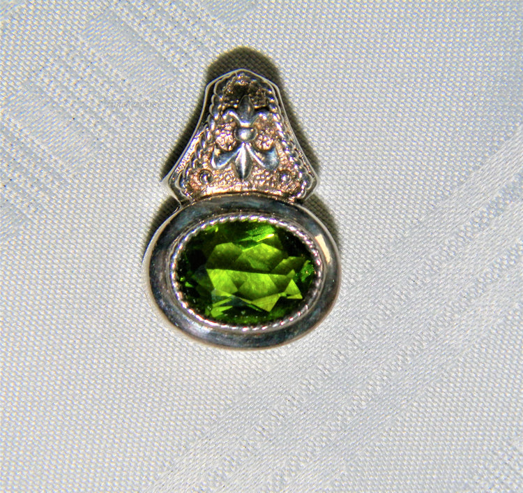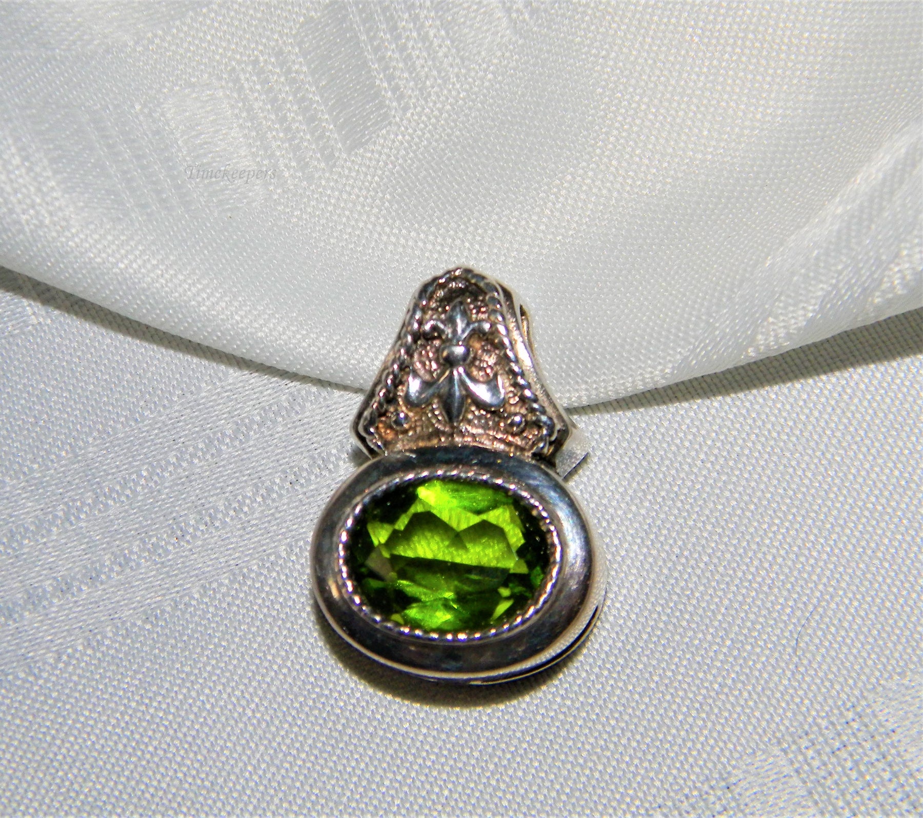 For Sale: (1) Beautiful Sterling Silver Omega Pendant with Green Stone