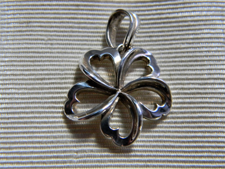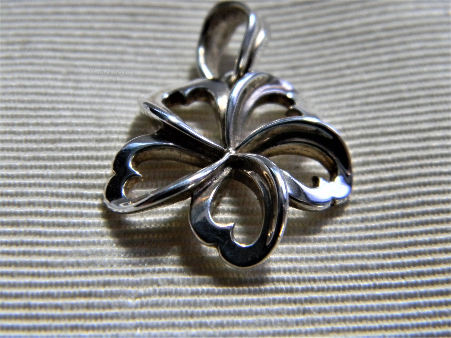 Pre-owned vintage item. Great condition. Please see pictures for details. Sold as is, as seen on pictures.This lovely flower pendant features petals that are shaped like hearts. Lovely piece. The back is stamped 925.