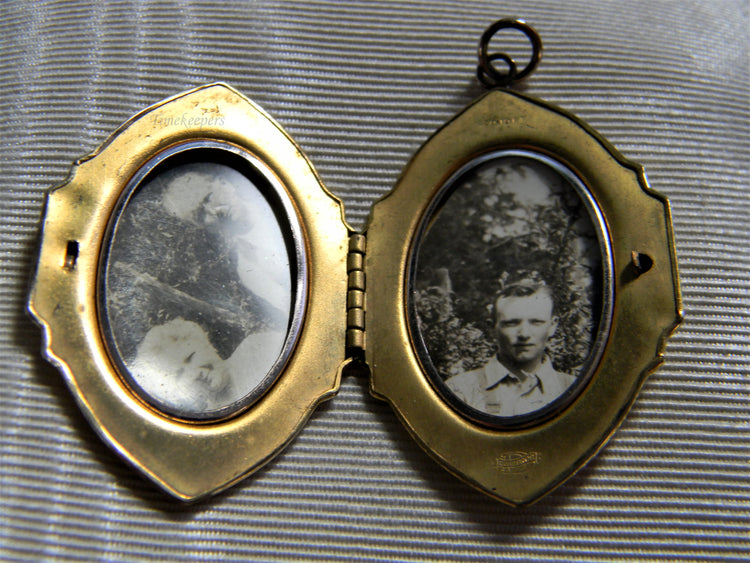 For sale: (1) Great Beautiful Vintage Art Deco 10k Yellow Gold Filled Locket PLEASE READ ENTIRE DESCRIPTION BEFORE PURCHASING Pre-owned item. Good condition. Scratches from wear and age. Please see pictures for details. Sold as is, as seen on pictures. This locket features an embossed flower design on the front with an engraved B on the front. The hinges work properly and it closes properly. The inside of the locket is marked Dunn Bros. and 120 10k. There are pictures inside of this beautiful locket that can be replaced. It would make a wonderful gift for a loved one. Specifics: 10k Yellow gold filled