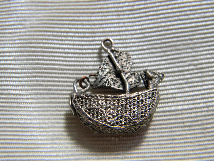 For Sale: Nice Vintage Sailing Ship Charm/ Pendant in Silver Tone