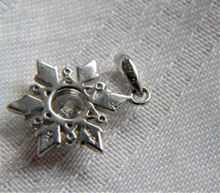 For Sale: (1)Pretty Snowflake Pendant with Center Clear Stone in Sterling