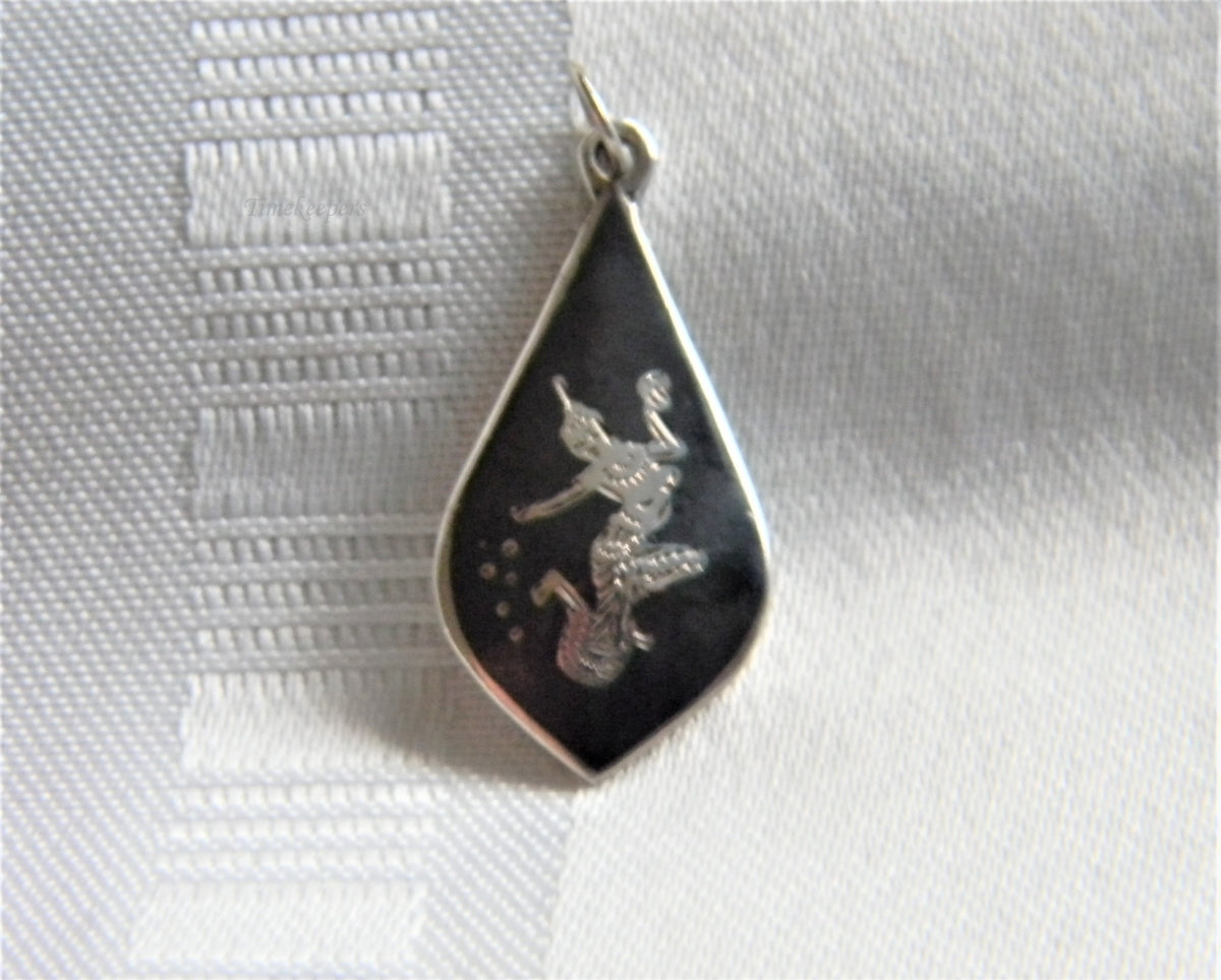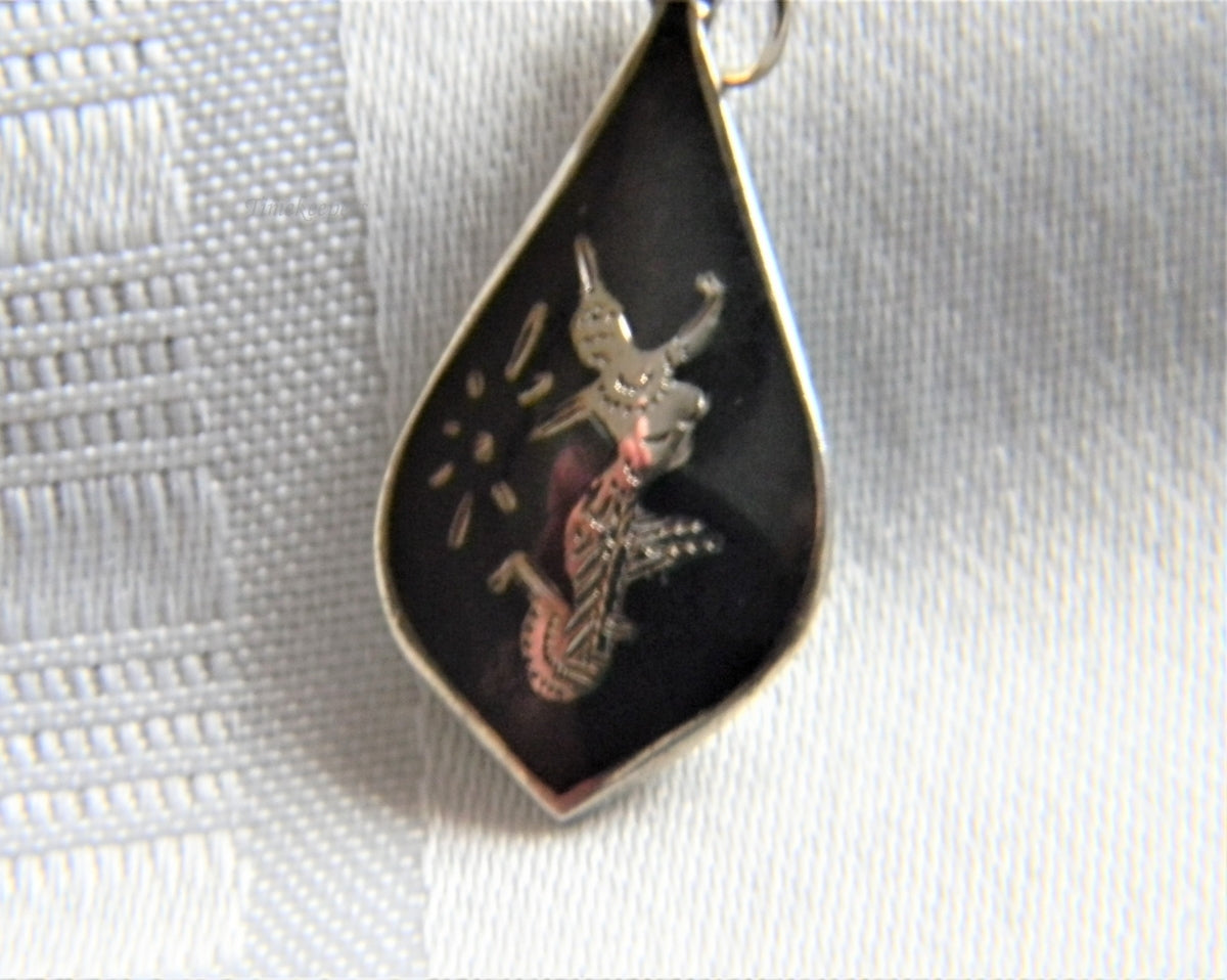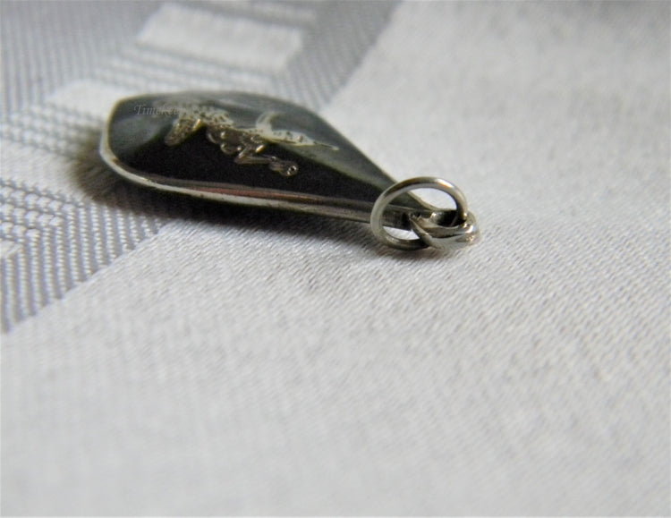 For Sale: (1) Vintage Siam Sterling Niello Gray Enamel Tear Drop Pendant