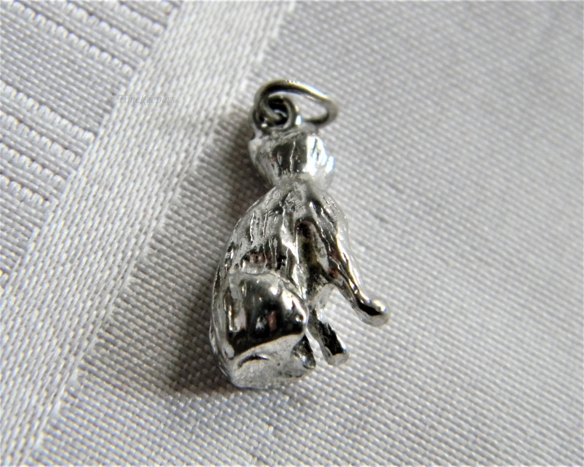 This is a 3D Sitting cat pendant or charm. The piece does not have any marking on it. Silver tone.