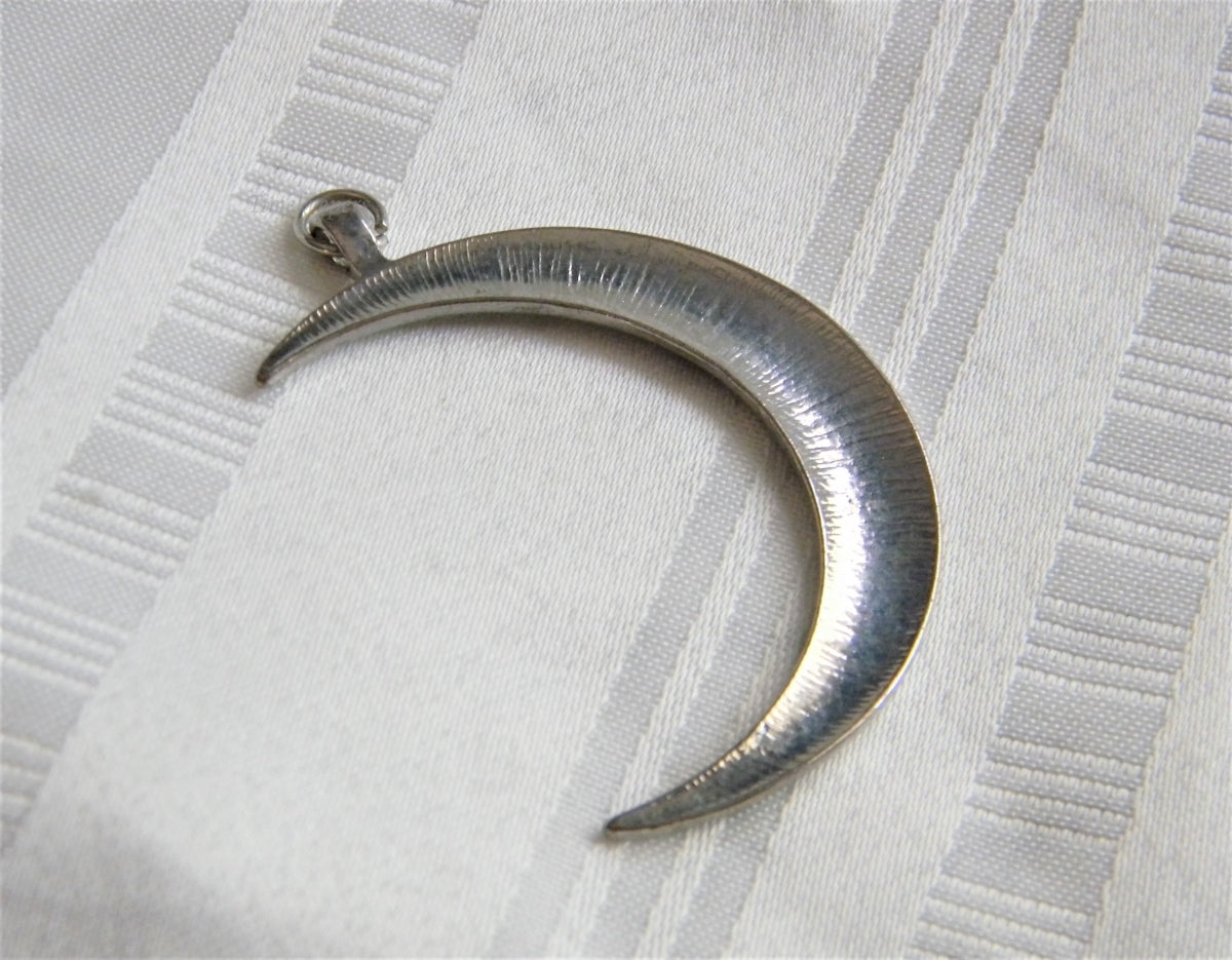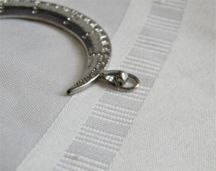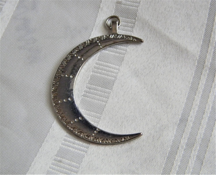 p244 Vintage Silver Tone Embossed Crescent Moon Pendant/ Charm (No Chain)