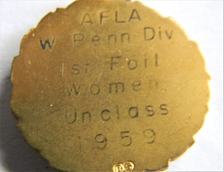 p340 Vintage Gold Tone AFLA 1st Women Fencing Medal from 1959
