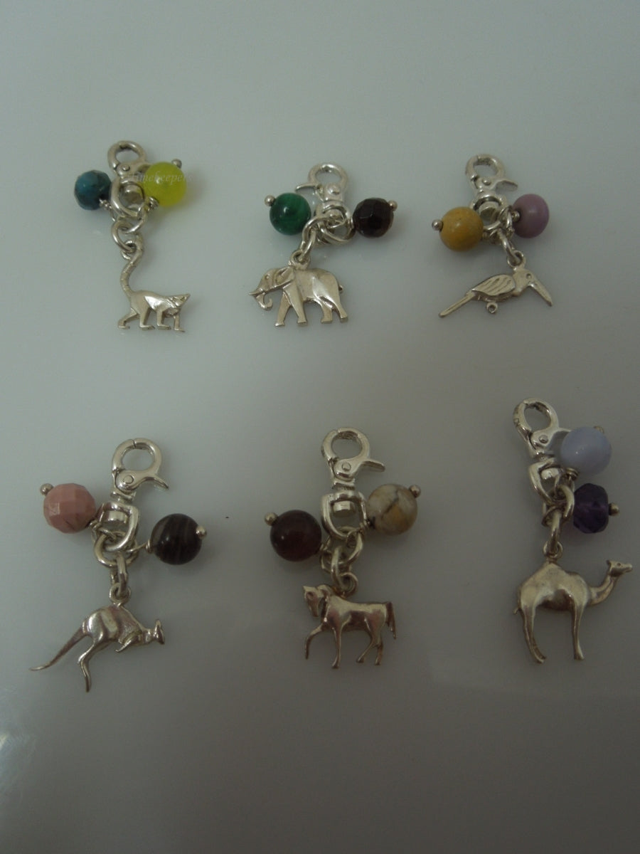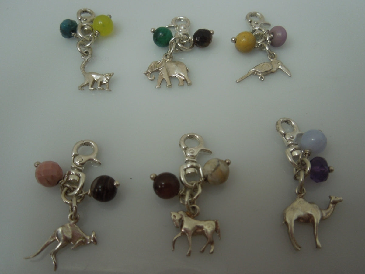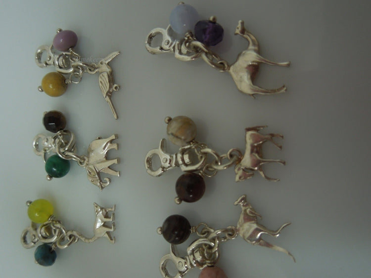 For Sale (1): q538 Lot of 6 Sterling Silver 925 Charms Animals (Dinosaur, Camel, Kangaroo, Horse, Elephant, Little Birdie)