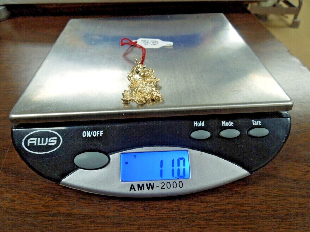 For Sale: (1) r572 14kt Yellow Gold Sapphire Cabo eyes Cute Puppy Dog Detailed Textured Pendant 11g/37mmx20mm