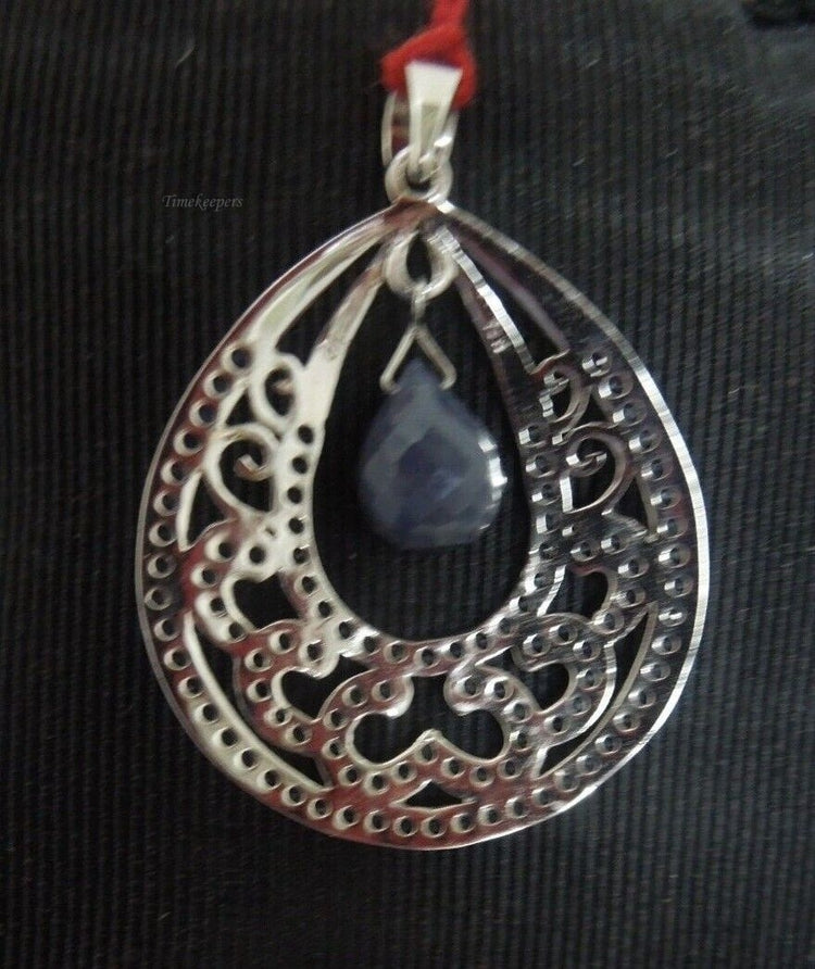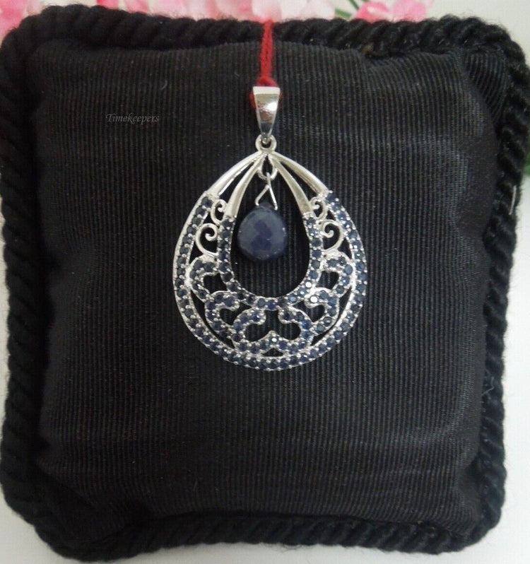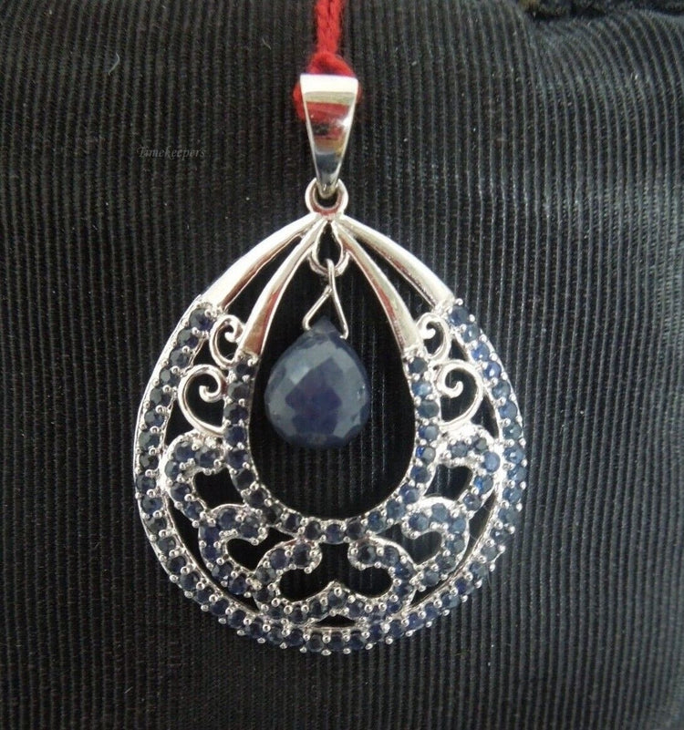 For Sale: (1) r961 10kt White Gold Blue Spinel Pendant Signed