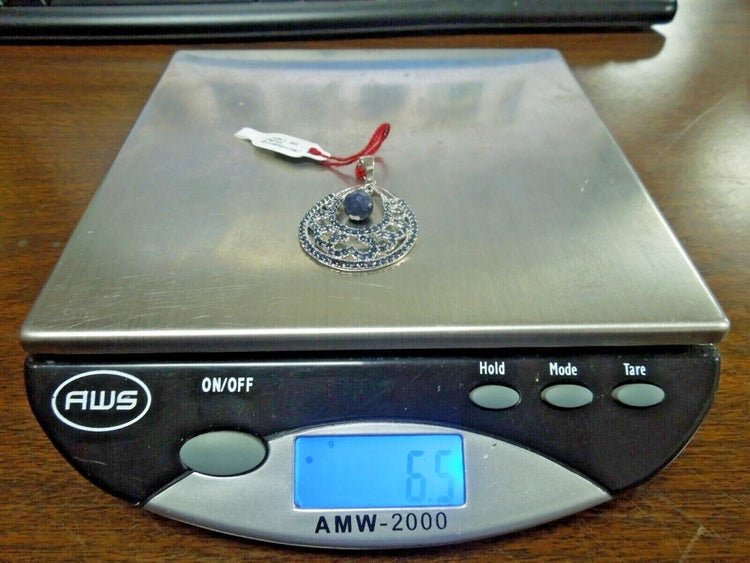 r961 10kt White Gold Blue Spinel Pendant Signed