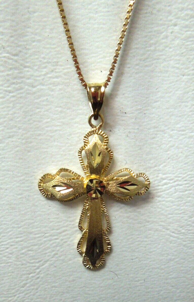 s786 14kt Yellow Gold 22" Box Chain with 14kt Beverly Hills Cross Pendant Signed