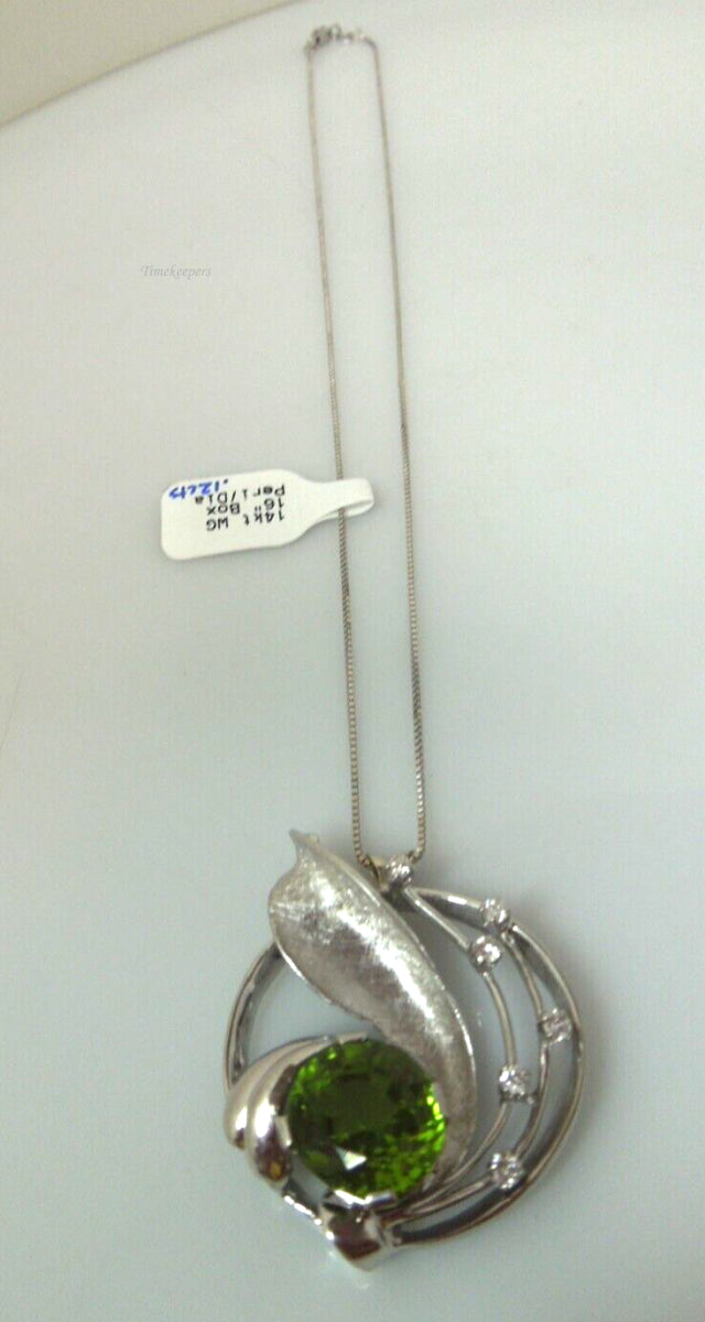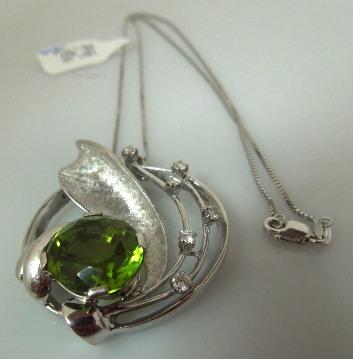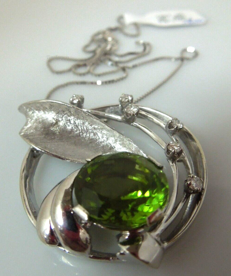 For sale: (1) s969 14kt White Gold Peridot Diamond 0.12 cts Pendant Necklace 15.3g Signed
