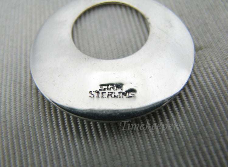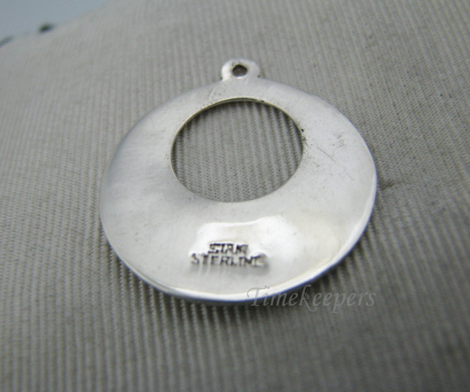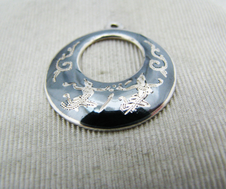 This is a lovely vintage round pendant with a cut out in sterling. This is a design done in dark gray Niello enameling. The back is stamped SIAM Sterling.