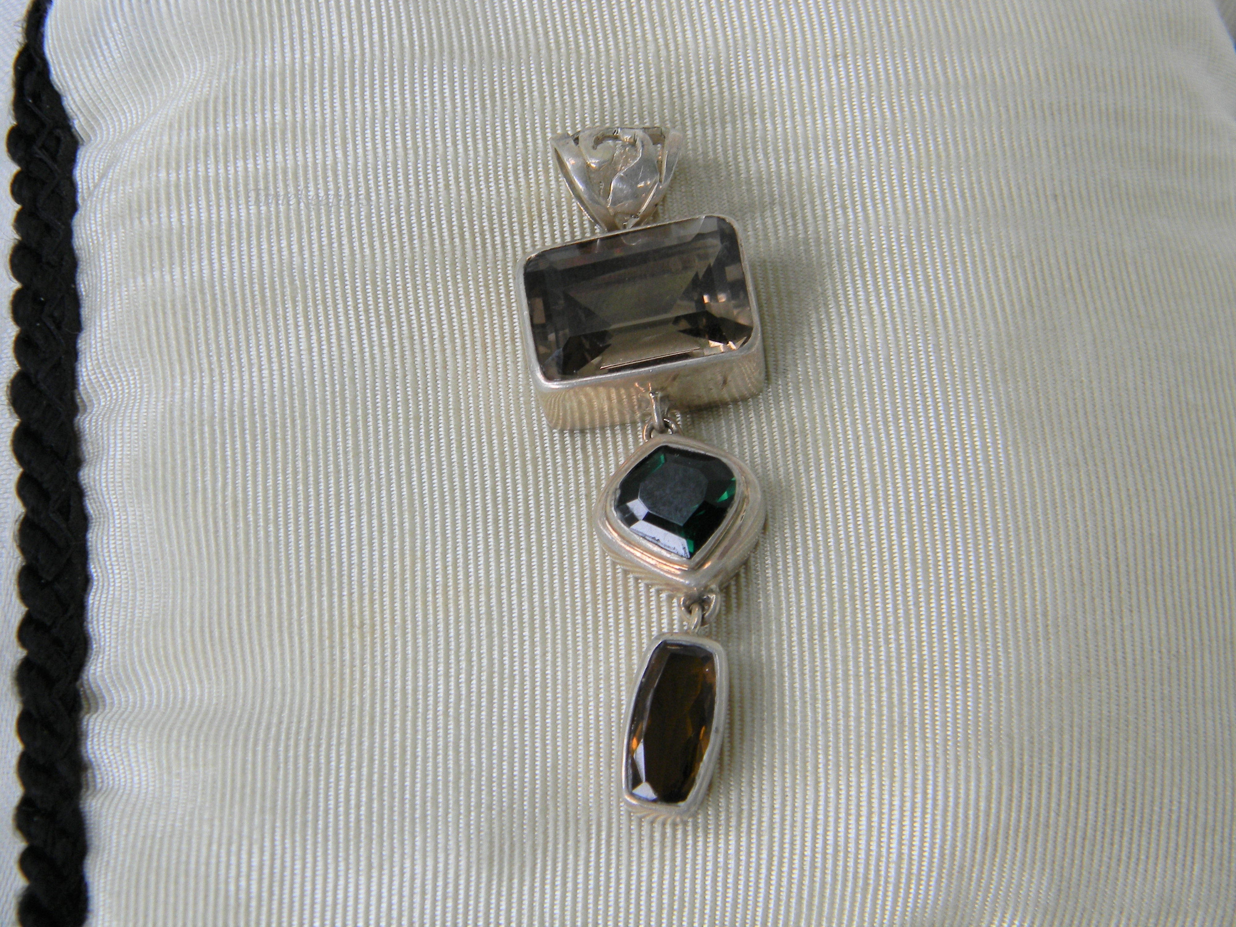 h382 Beautiful Sterling Silver Lori Bonn Triple Drop Pendant 3 Stones