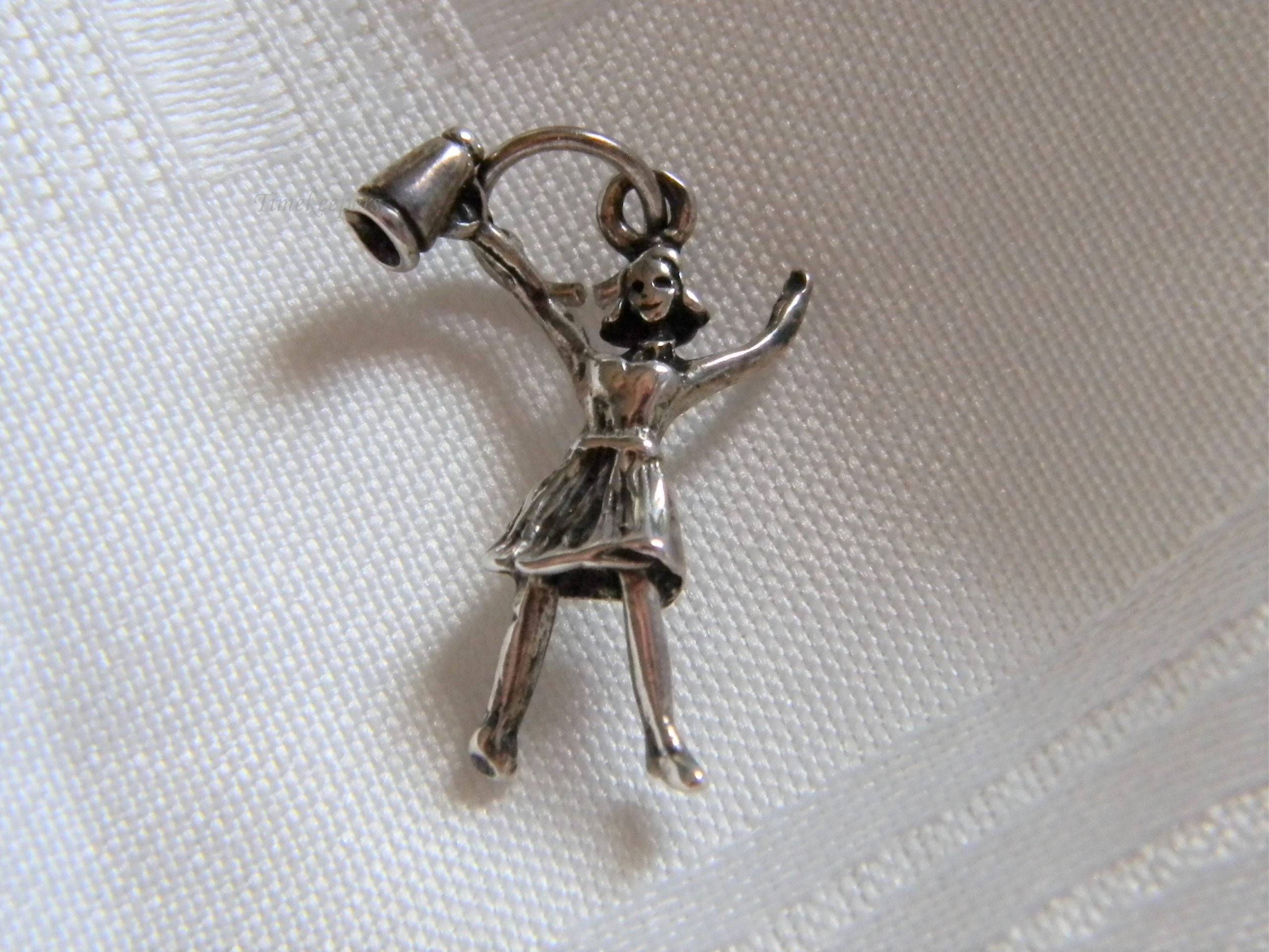 h587 Cute Sterling Silver Cheerleader with Mega Phone Charm or Pendant