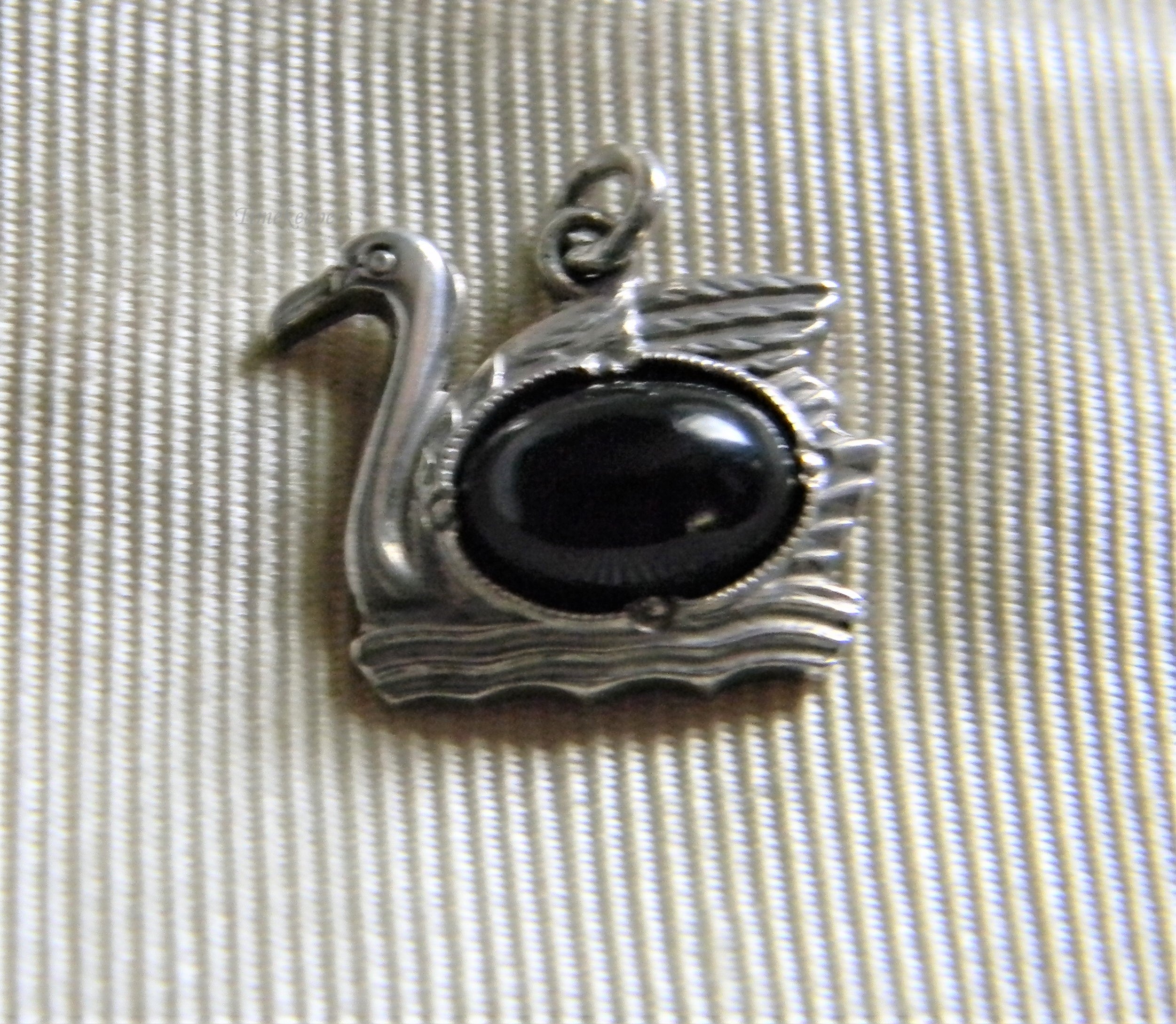 h861 Nice Vintage Sterling Silver Swan charm or Pendant with Oval Onyx