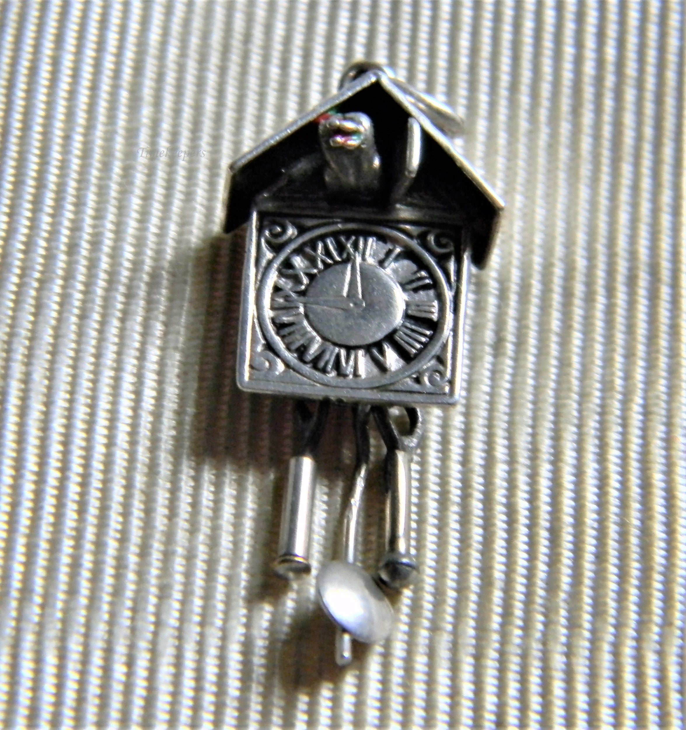 h874 Cute Vintage Sterling Silver Cuckoo Charm or Pendant with Pendulum