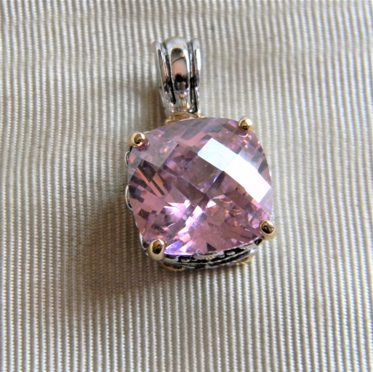 h695 Vintage Two Tone Scissor Cut Pink Stone Pendant