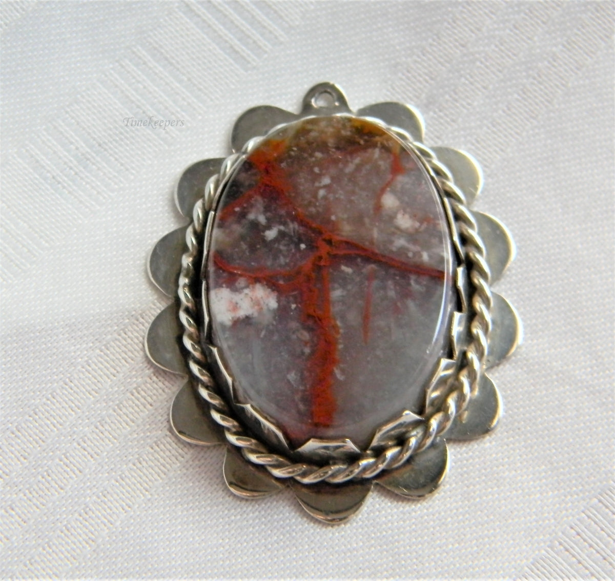 p058 Beautiful Vintage Sterling Silver Pendant with Quartz and Red Veins