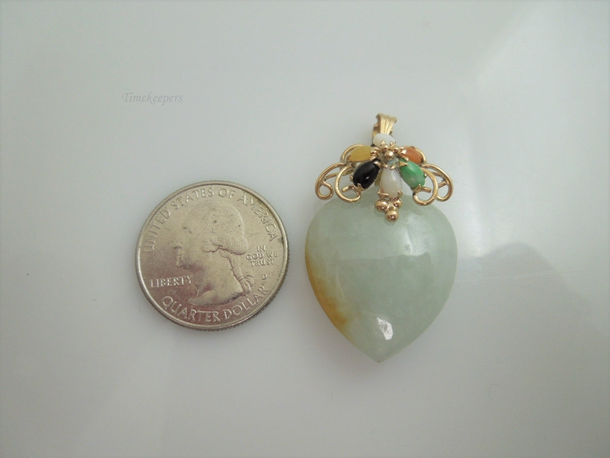 g957 Lovely Ladies 14kt Yellow Gold Heart Shaped Jade Pendant