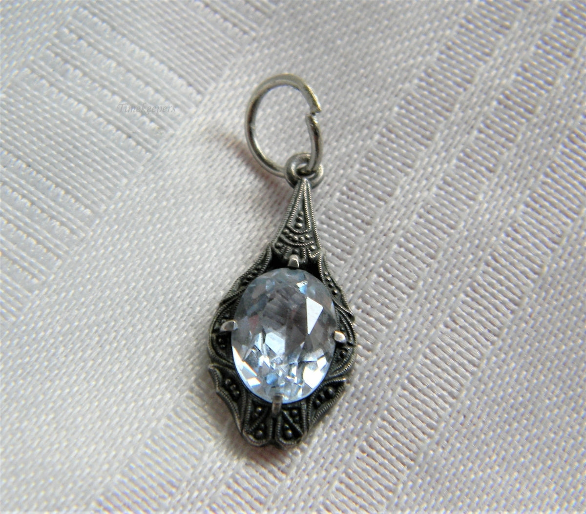 p066 Stunning Vintage Filigree Pendant with Oval Pale Blue Stone in Sterling