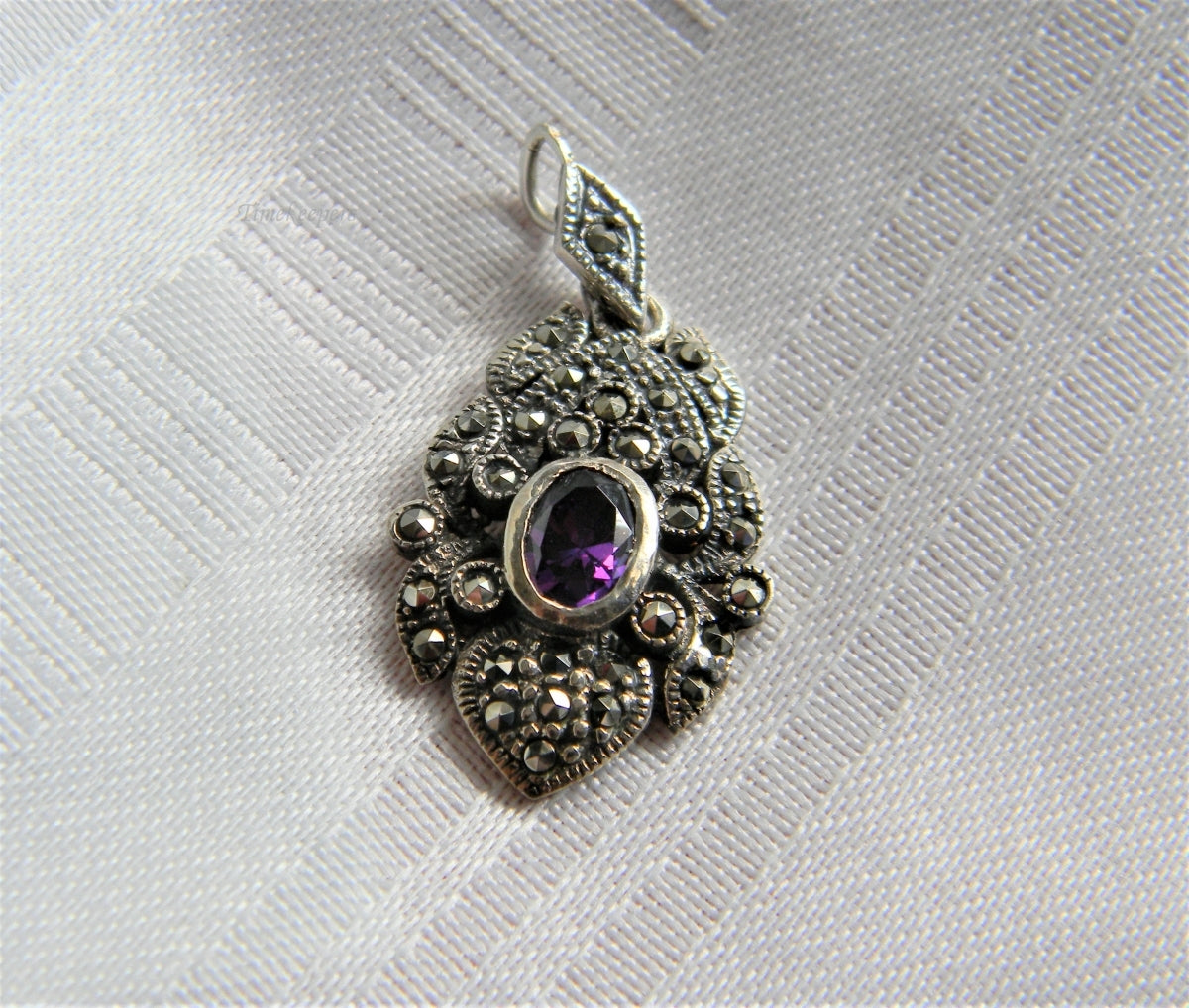 p069 Stunning Vintage Filigree Pendant with Oval Purple Stone in Sterling