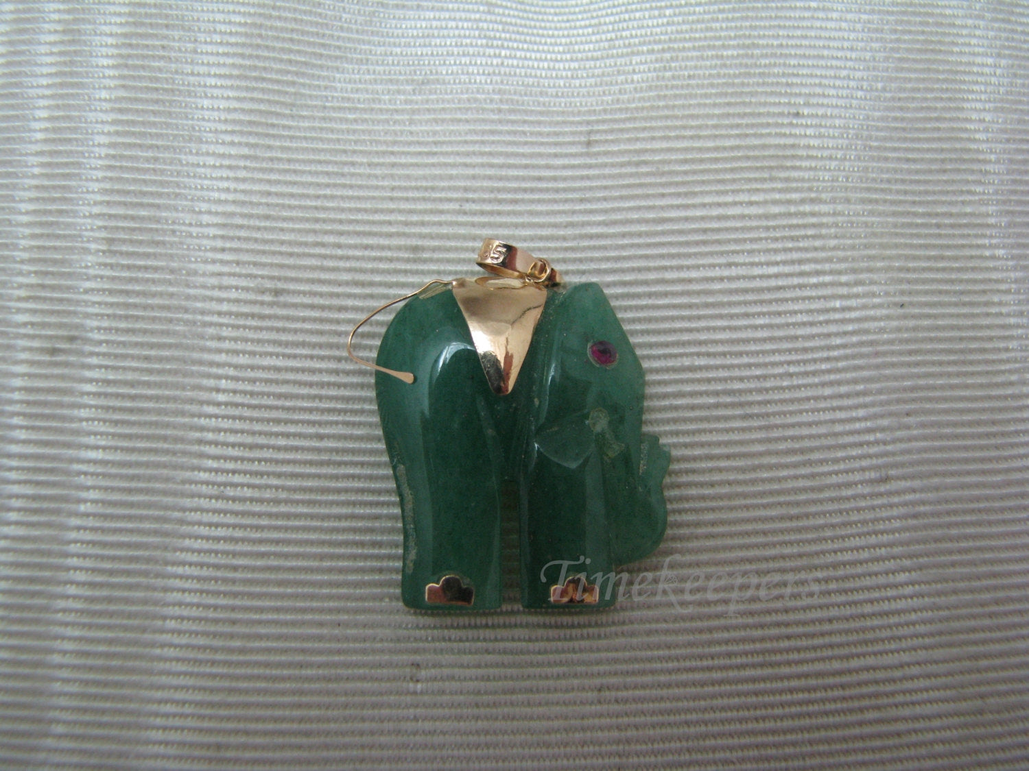 c636 14k Yellow Gold and Jade Chinese Elephant Amulet Pendant