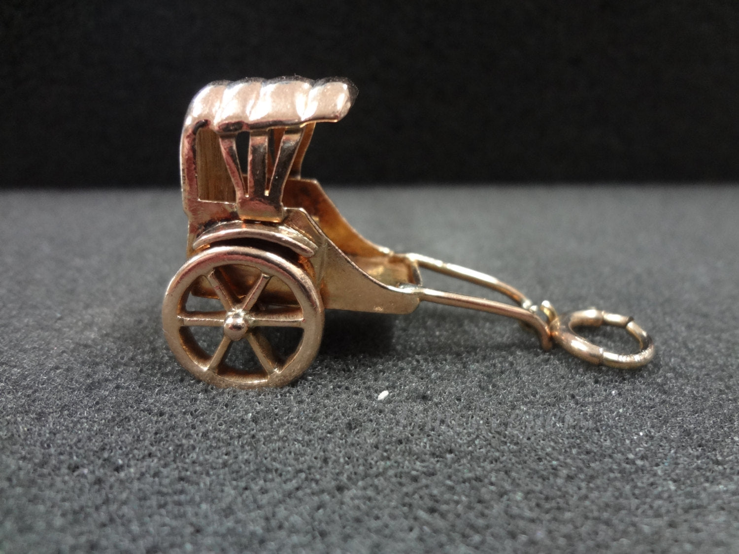 a686 14k Yellow Gold Horse Cart Charm or Pendant (Moveable Charm)