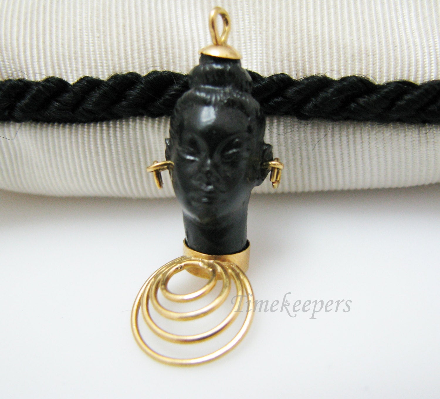 a860 Vintage Blackamoor Carved Ebony Head Pendant Charm in 18k yellow gold