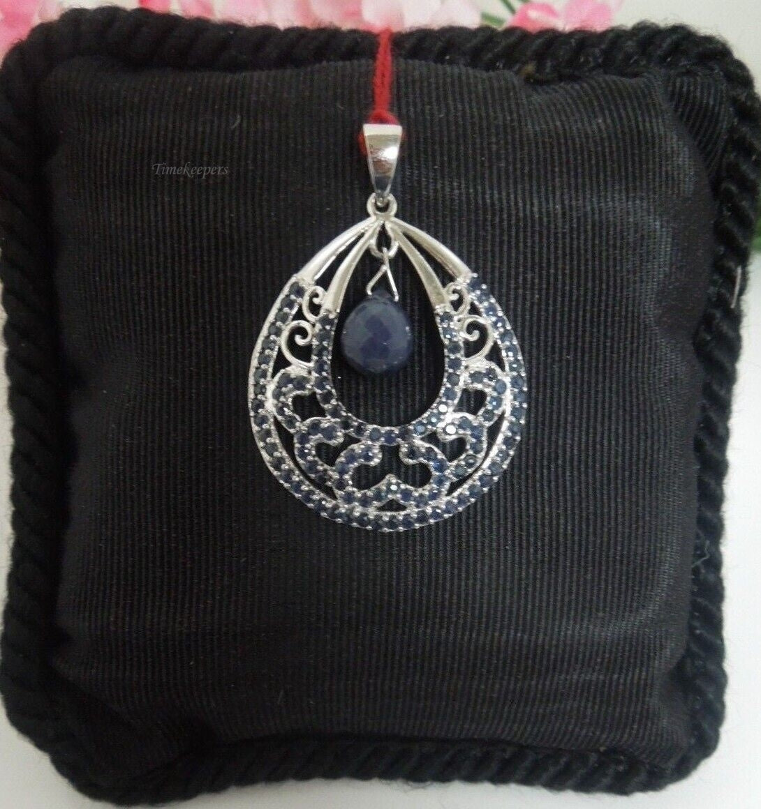r961 10kt White Gold Blue Spinel Pendant Signed
