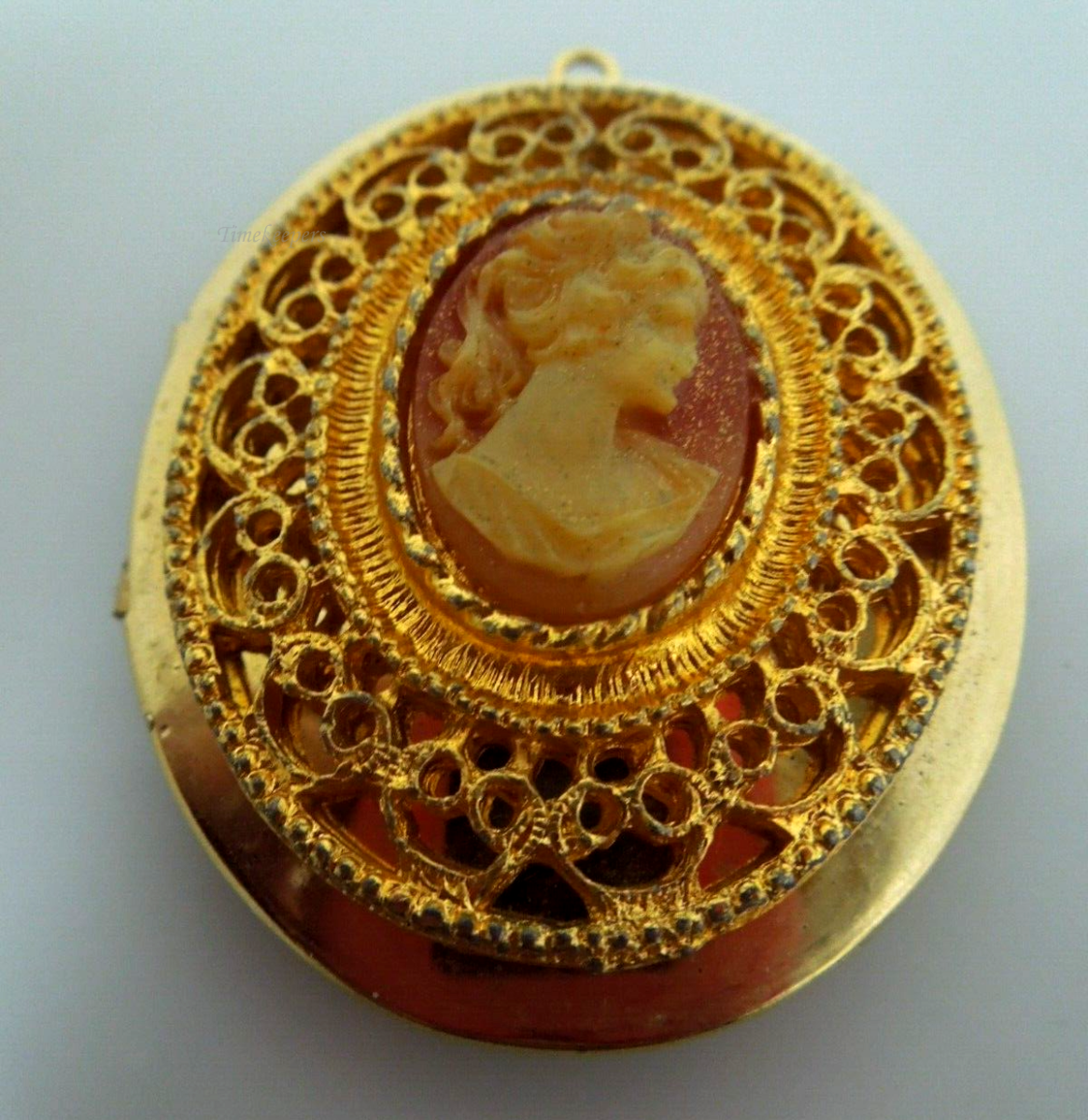 s268 Vintage Gold Filled Cameo Oval Pendant and place for two photos