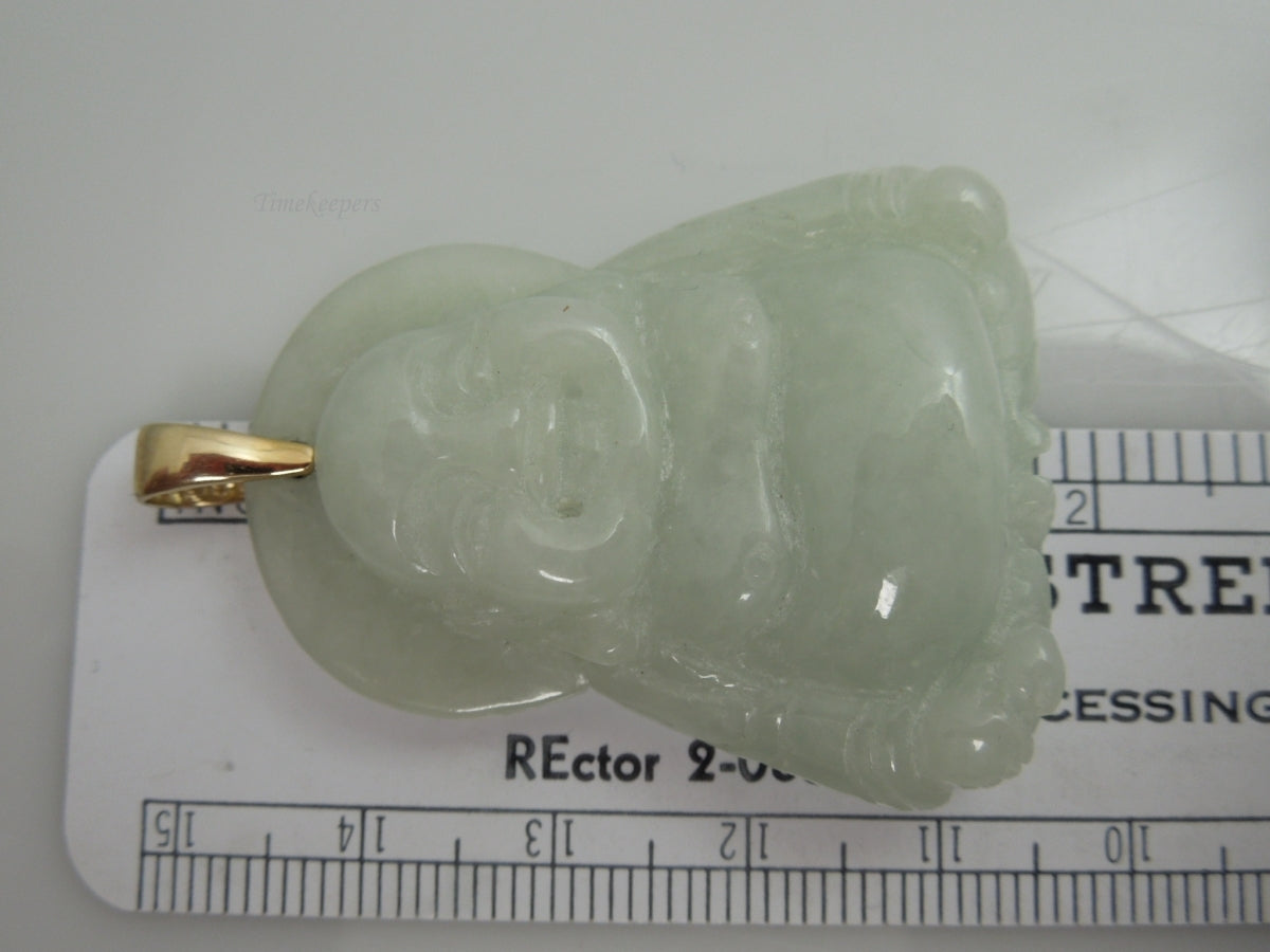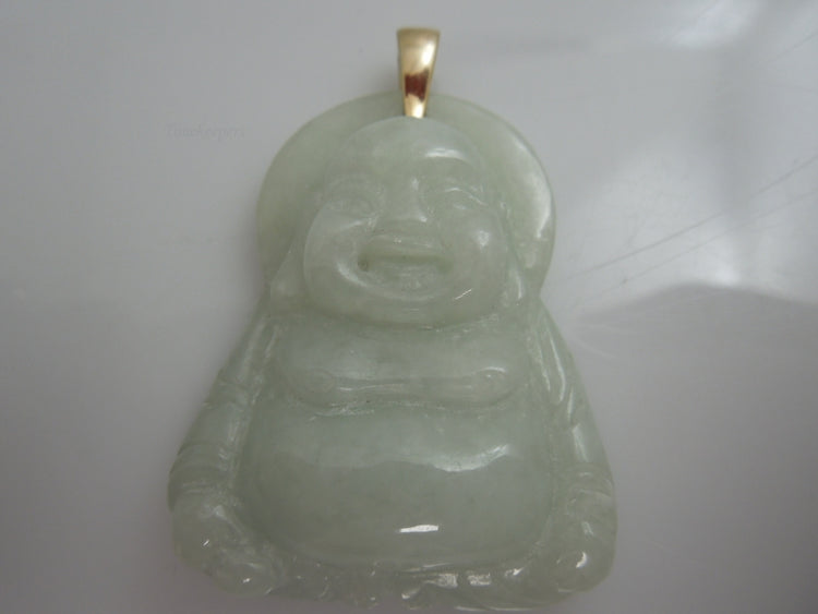 For Sale: (1) g956 Large Unisex Jade Buddha Pendant with 14kt Yellow Gold Bail