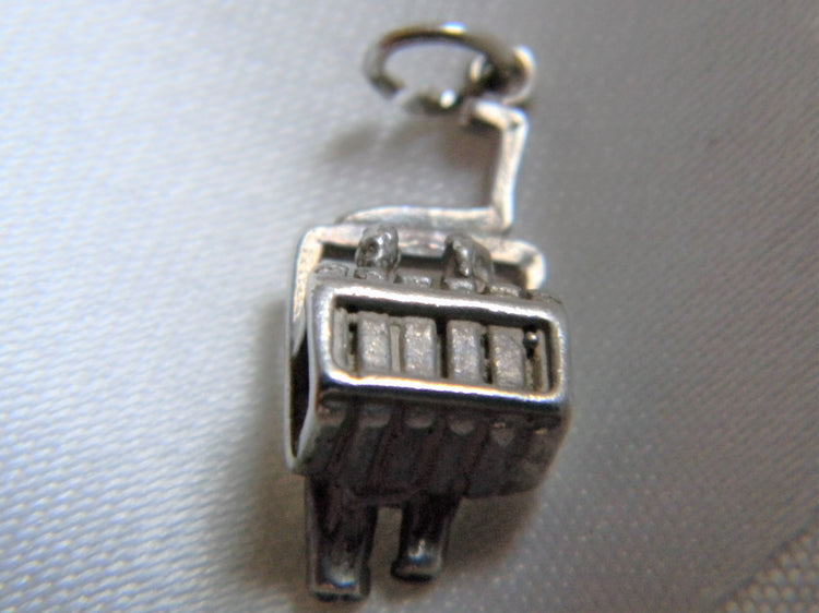 h596 Vintage Sterling Silver 3D Ski Lift with People Charm /Pendant