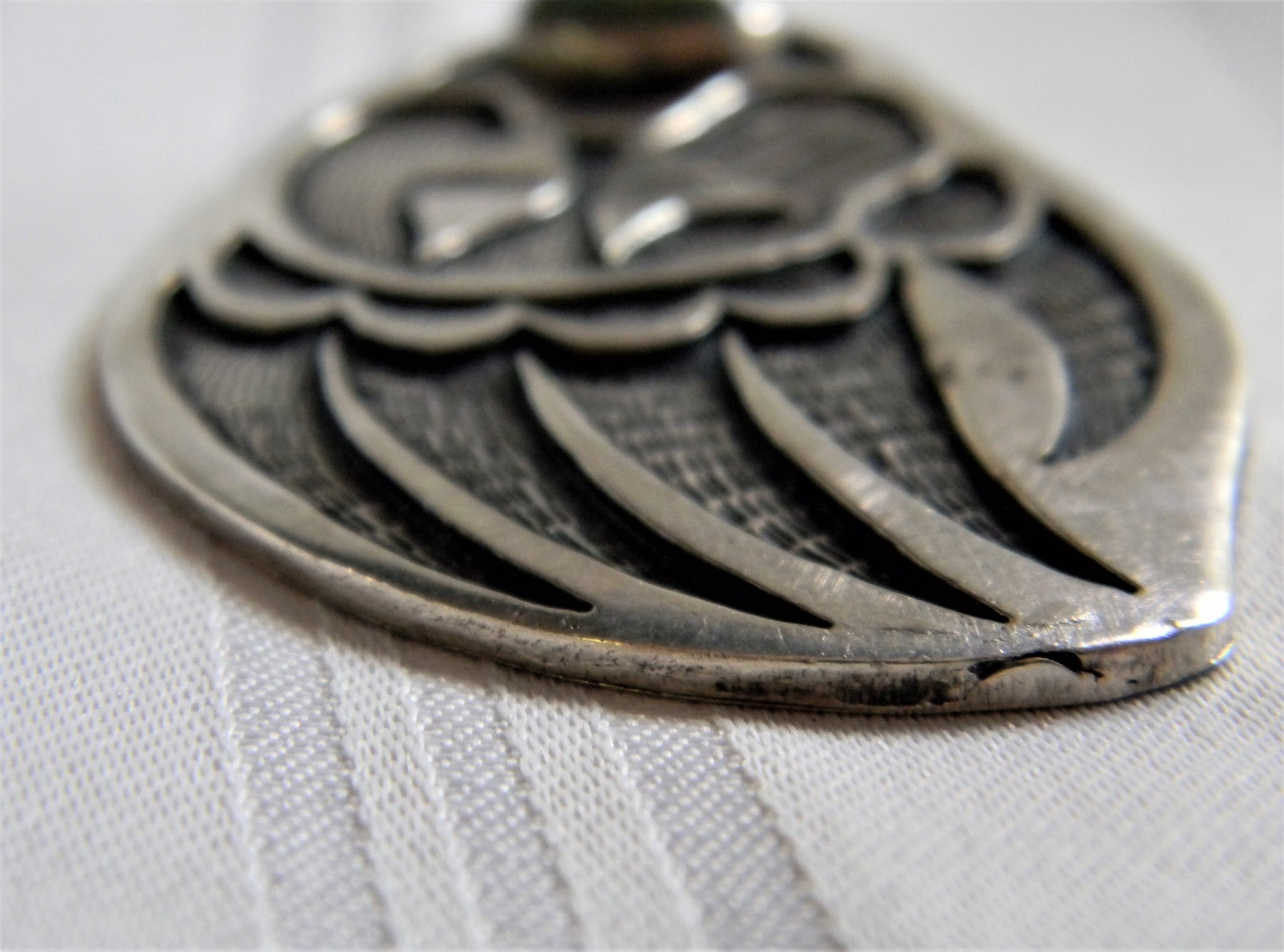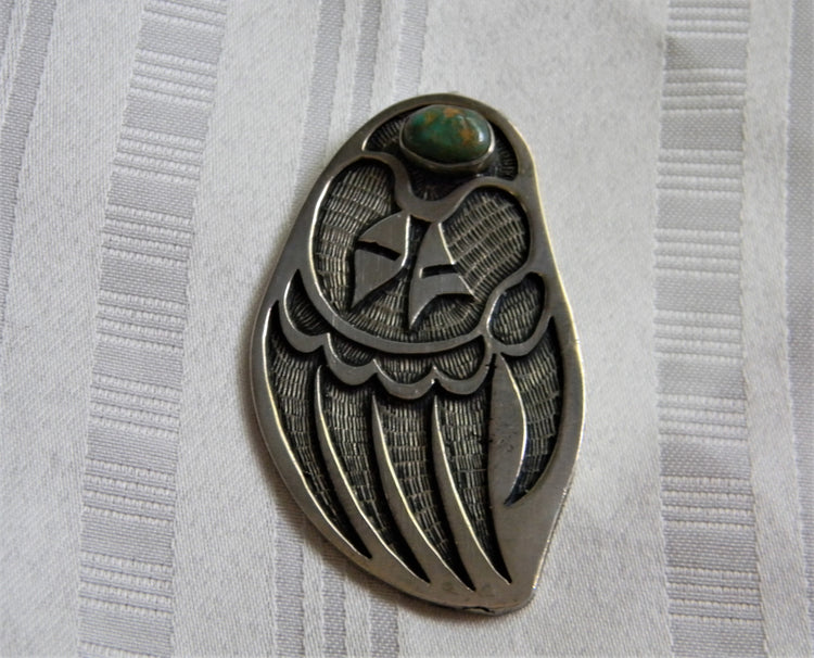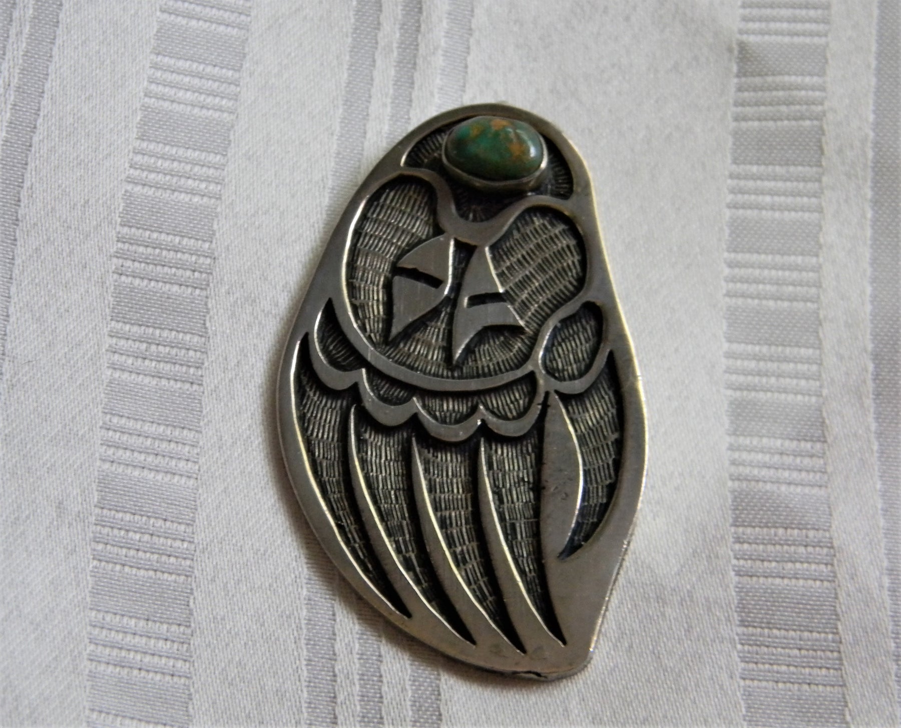 p190 Unique Vintage Sterling Silver Bear Claw Pendant/ Clip with Turquoise