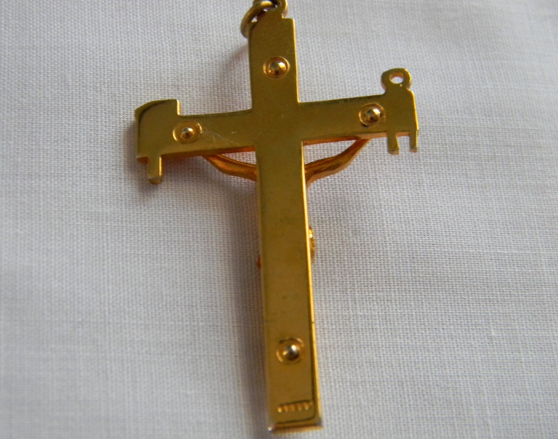 This lovely Crucifix Pendant ist in gold stone with Creed stamped on the back.