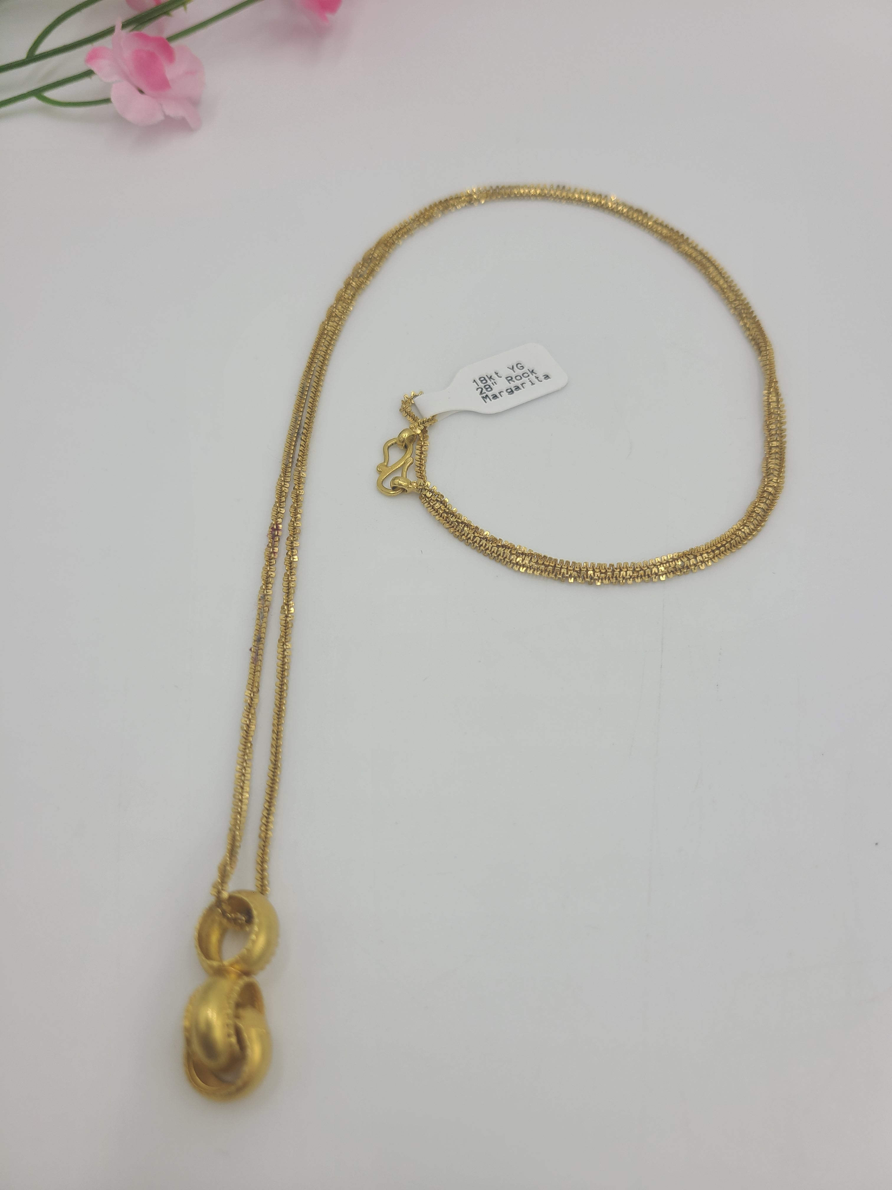 k735 Unique 18kt Yellow Gold 28" Rock Margarita Style Chain with 3 Hanging Rings