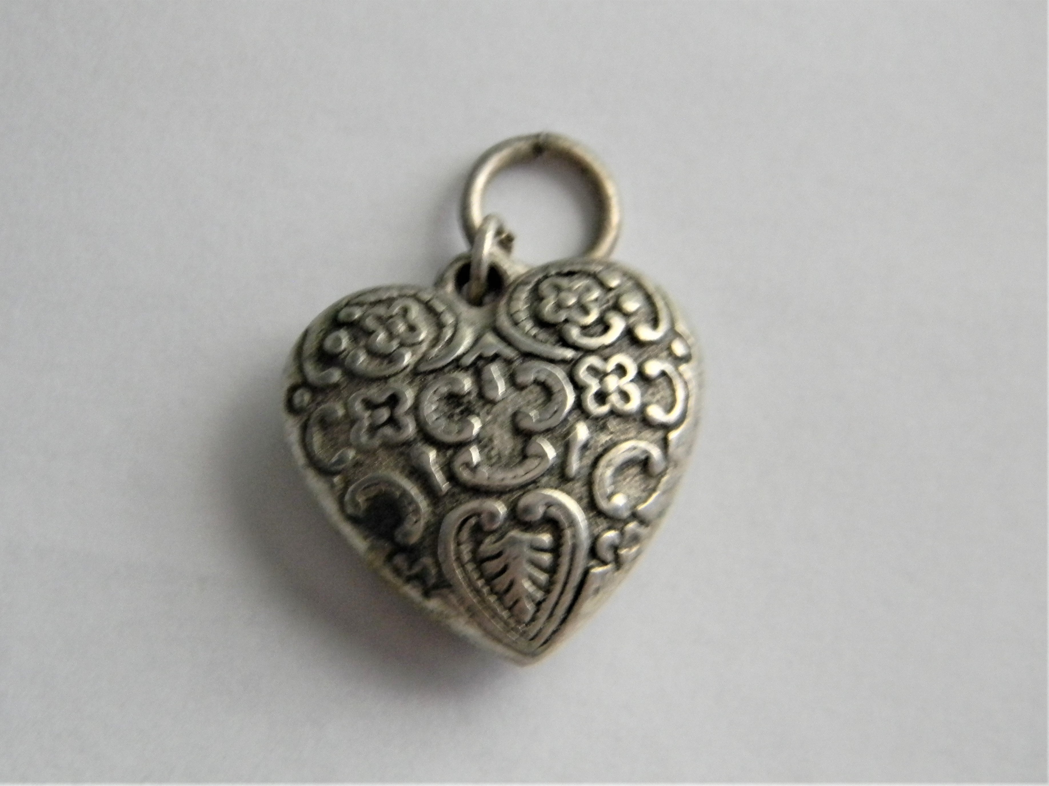 p369 Silver Tone Embossed Puffed Heart Pendant