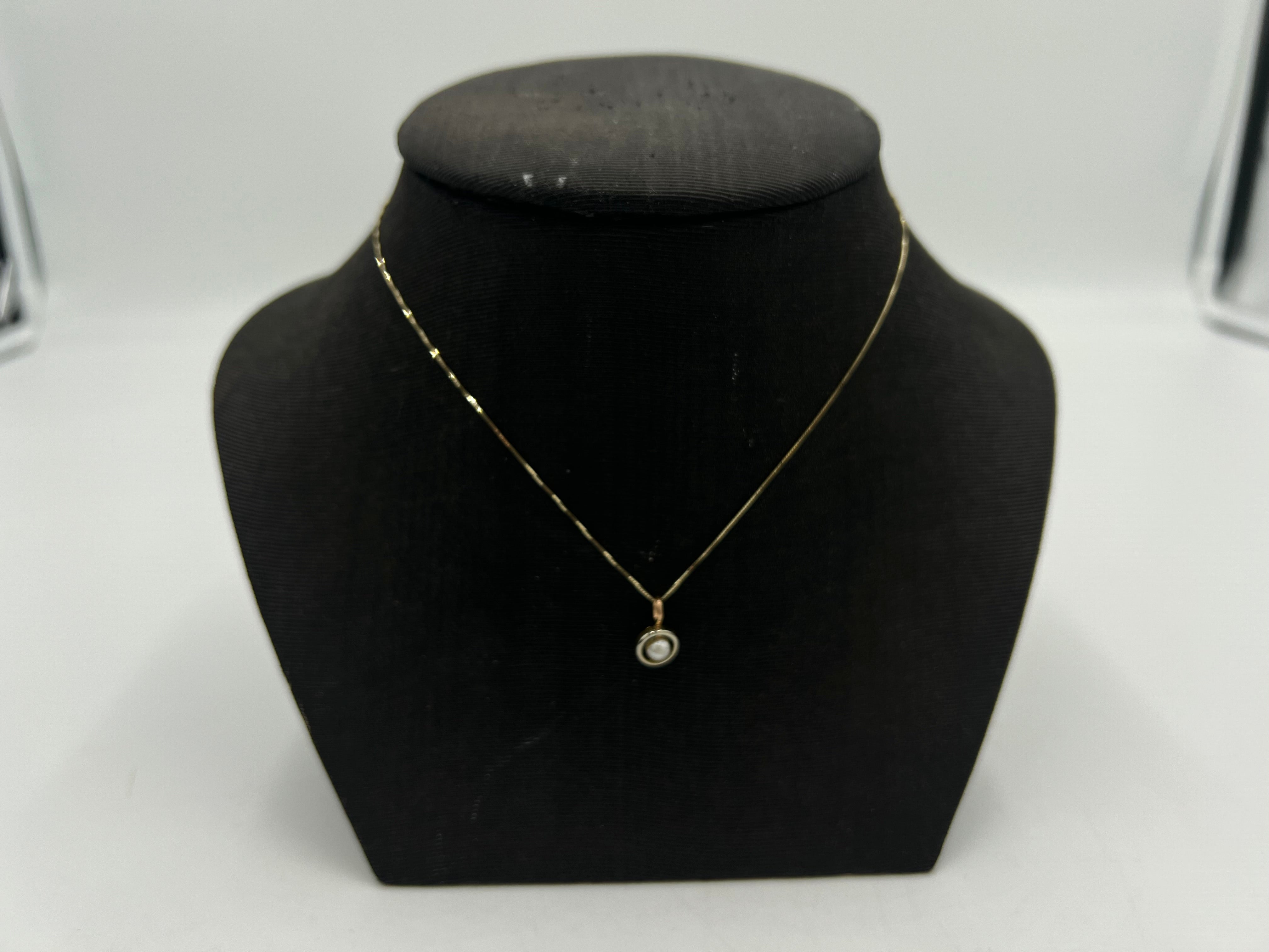 u122 Lovely Ladies Vintage 14kt Gold Pearl Pendant 16" Box Chain