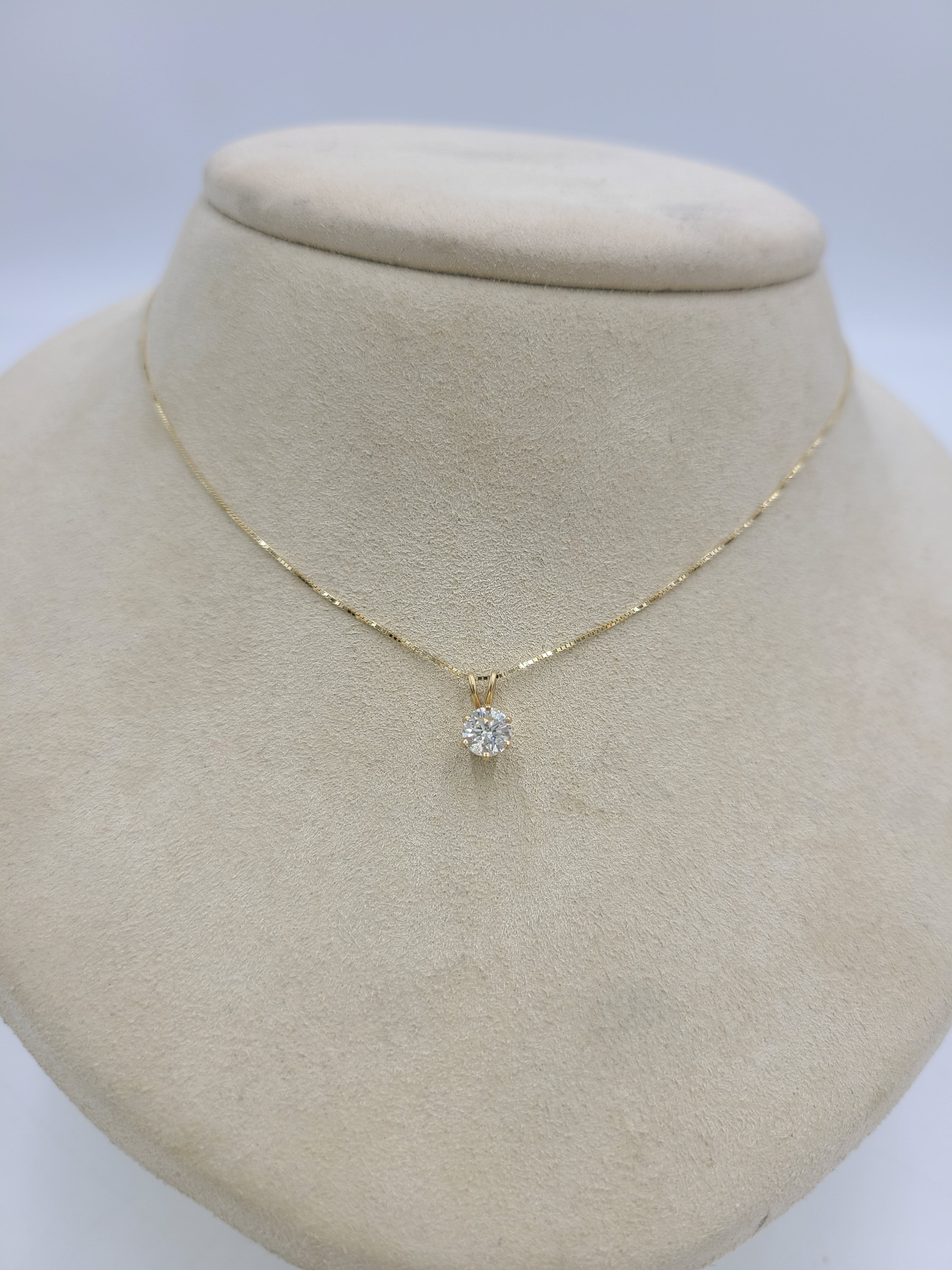 k796 Lovely Ladies 14kt Yellow Gold .50cts Diamond Solitaire Pendant