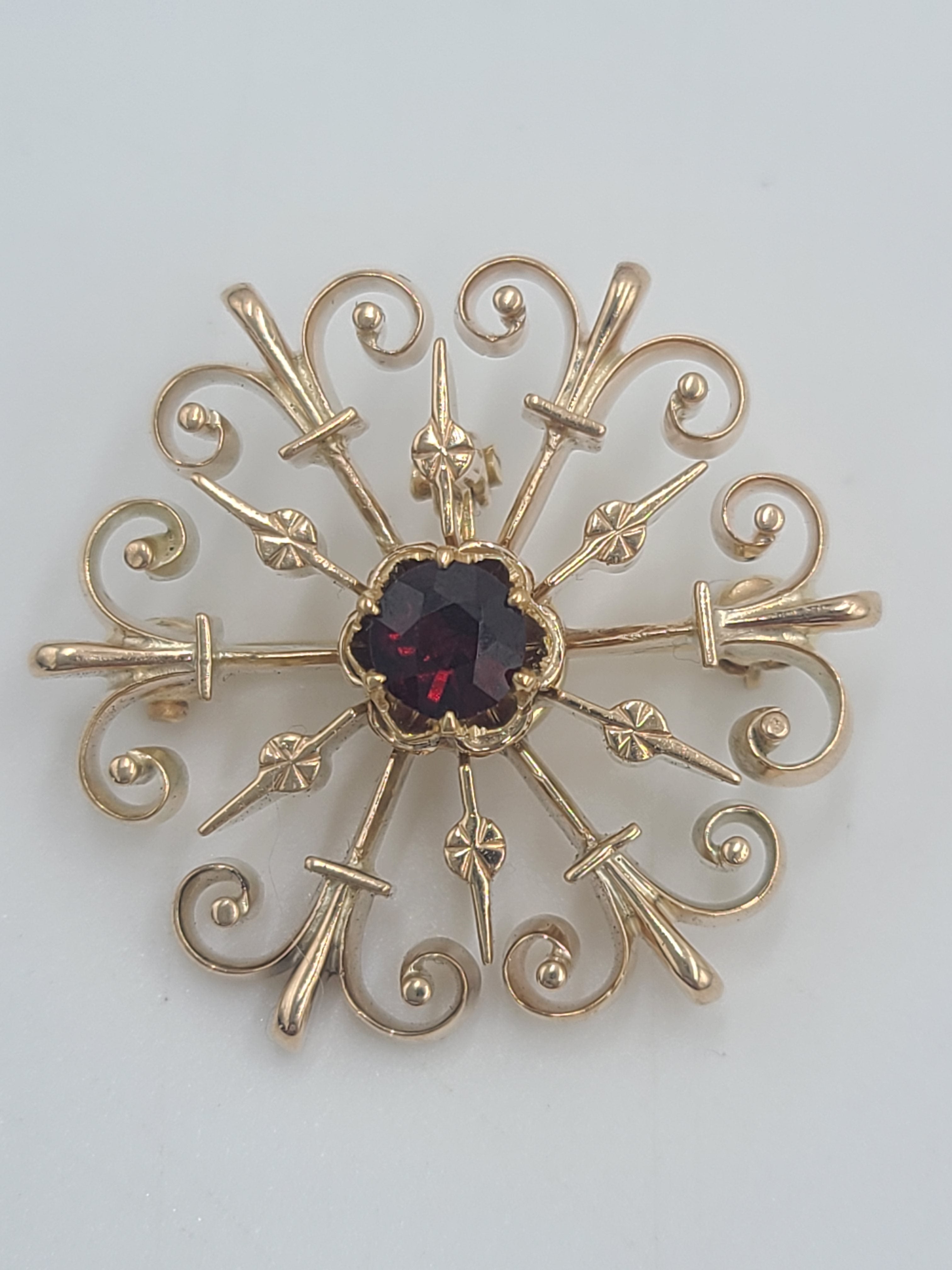 k800 Stunning Vintage Ladies 10kt Rose Gold Garnet Pin and Pendant