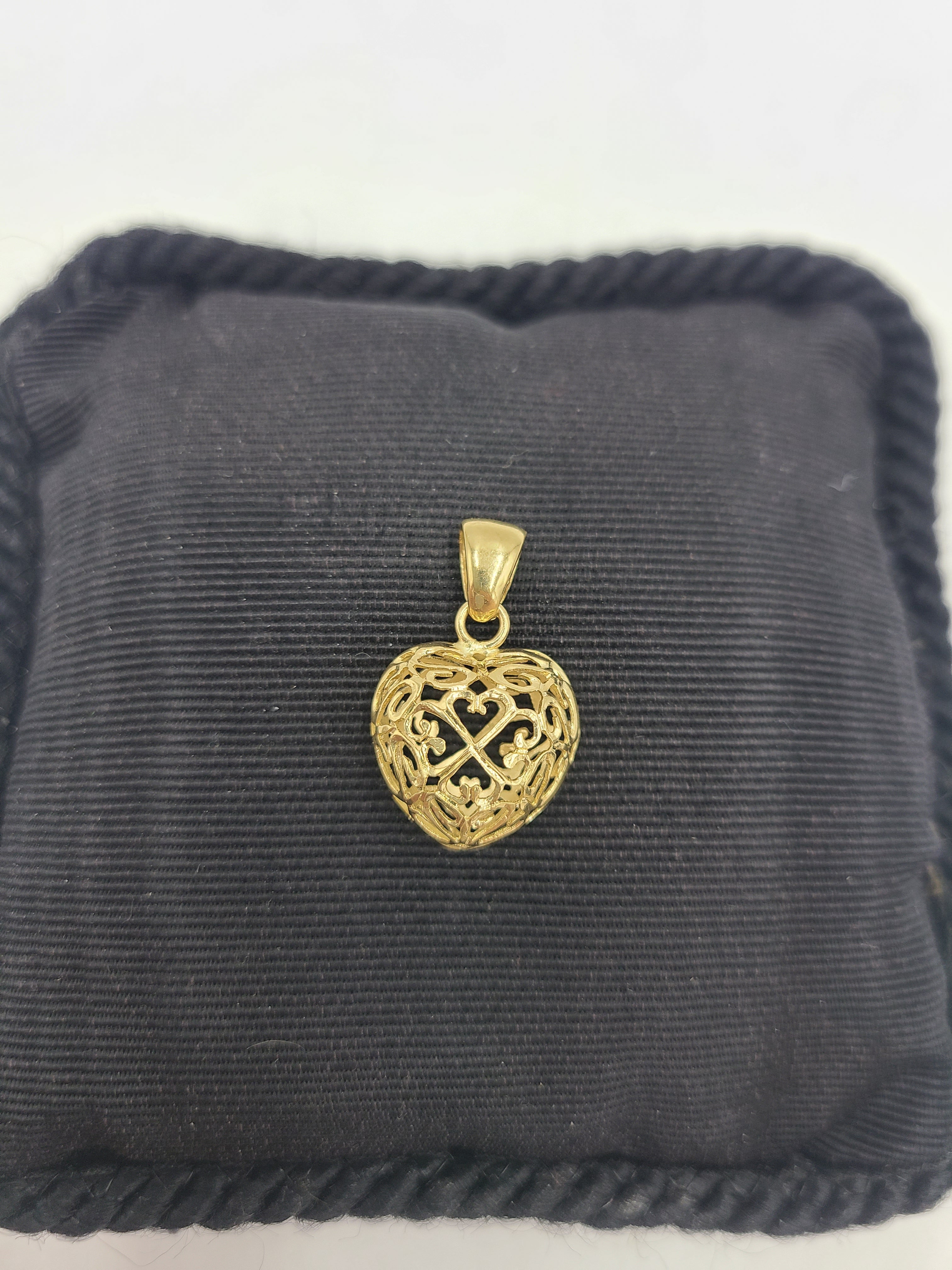 k794 Lovely Ladies 14kt Yellow Gold Puffy Skeletal Heart Pendant